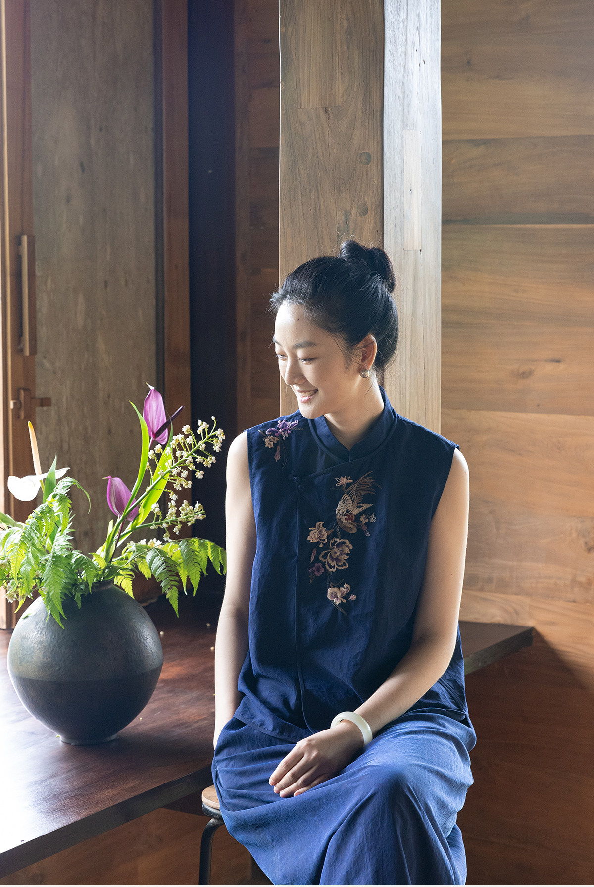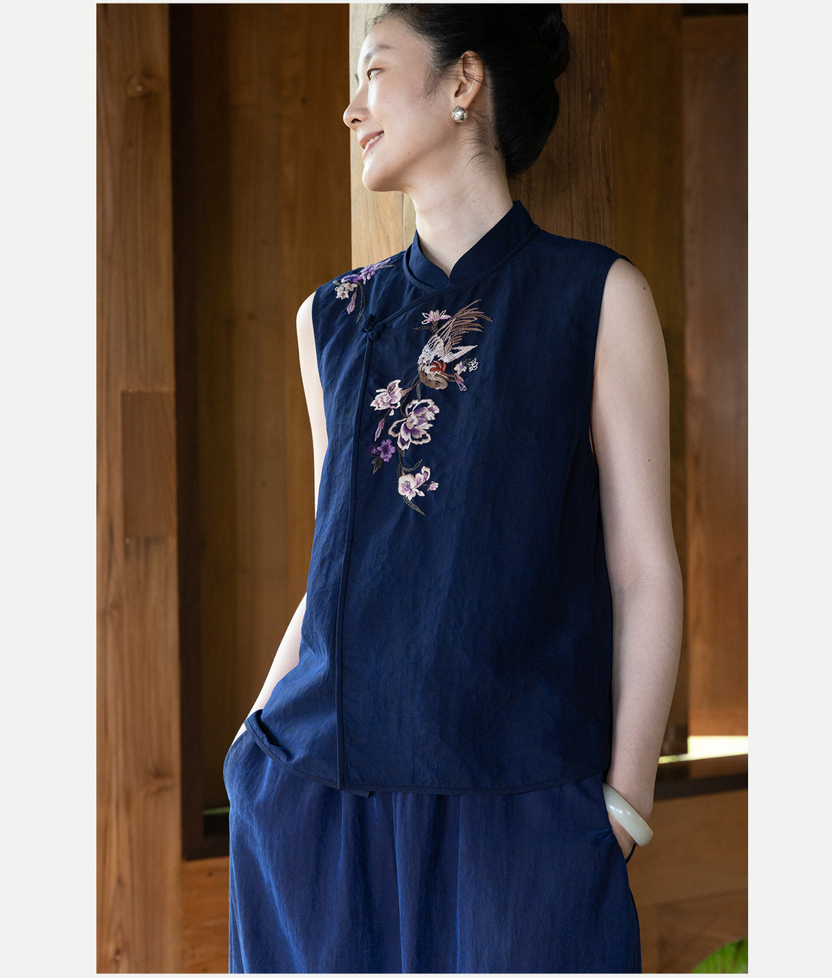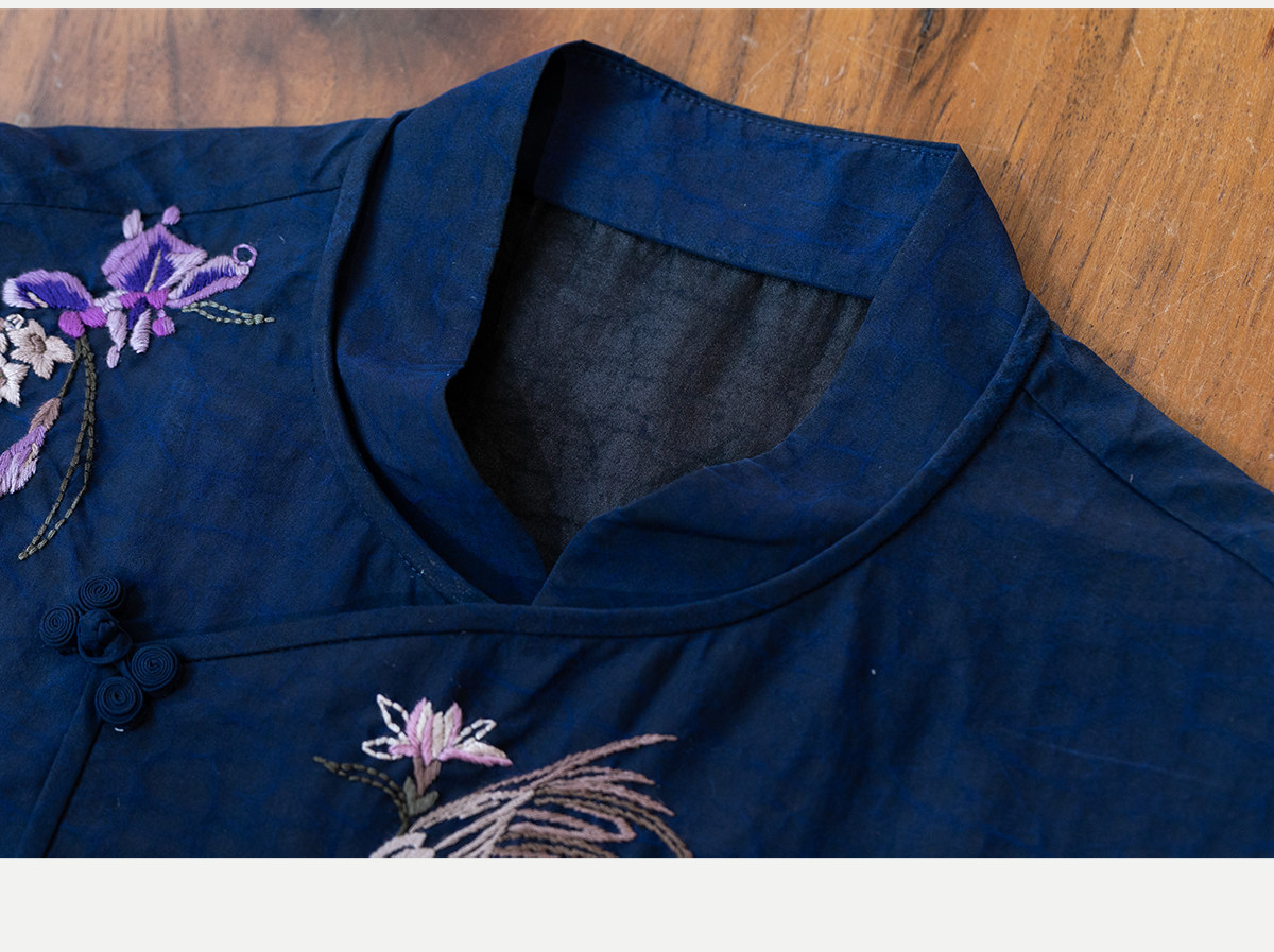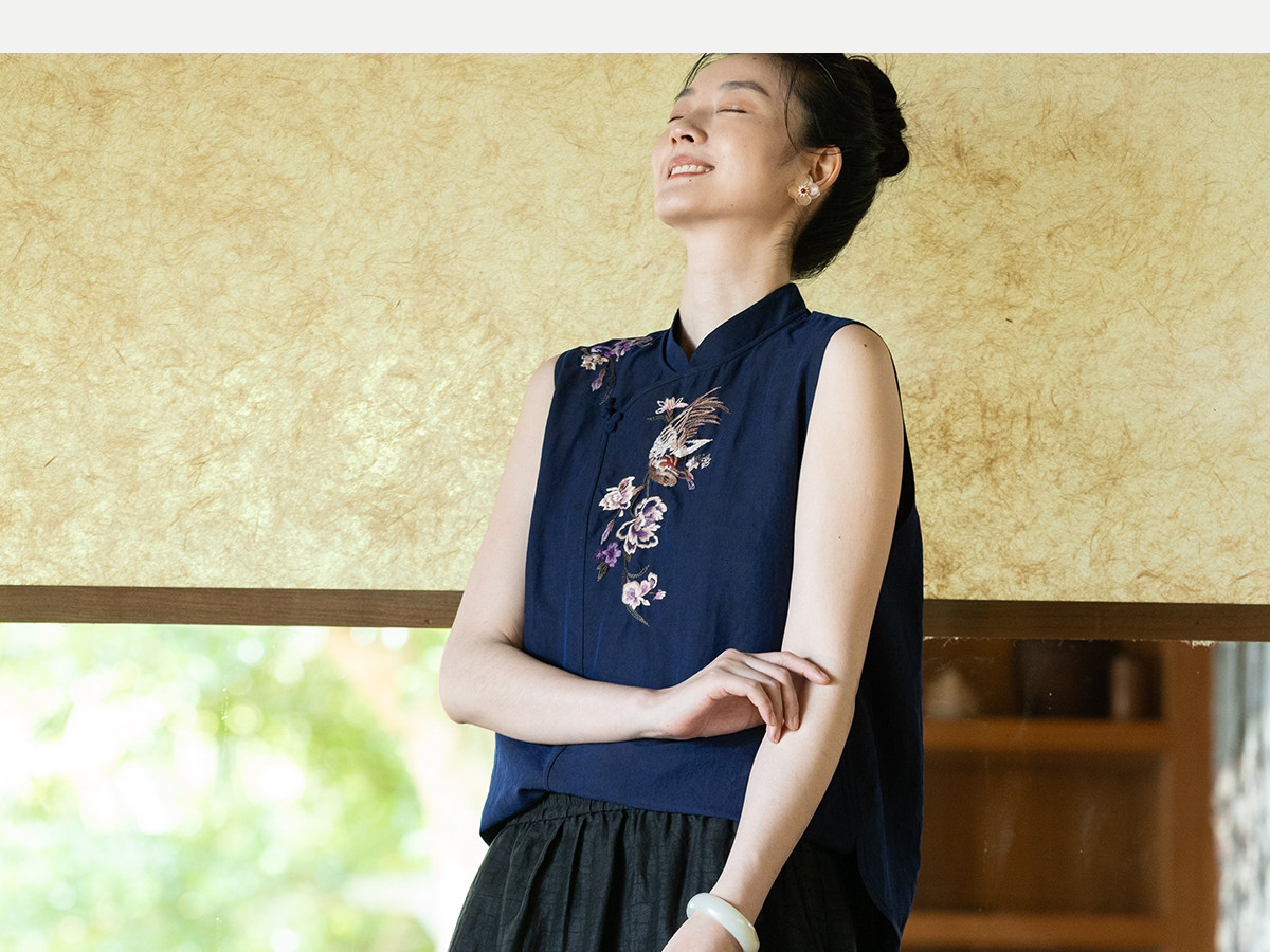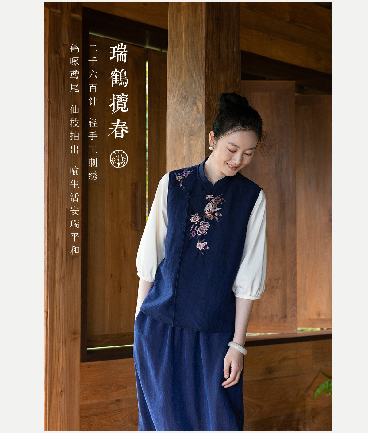 牧衣游原创 22姆米重磅手工刺绣香云纱马夹斜襟中式复古开衫 松逸