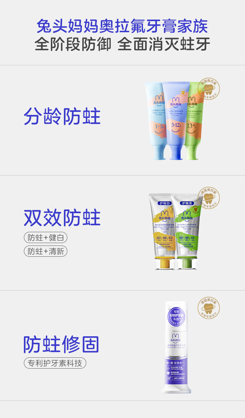 兔头妈妈高纯幼儿防蛀牙膏1-3岁草莓味