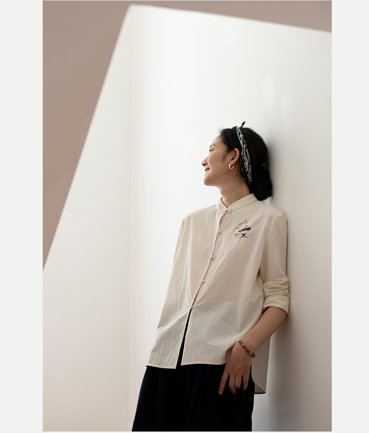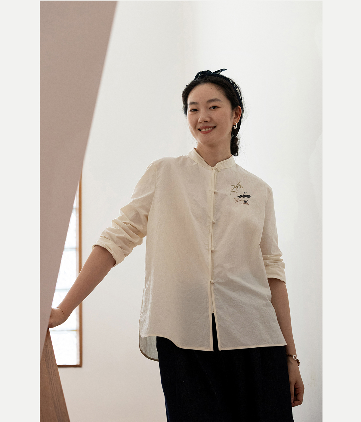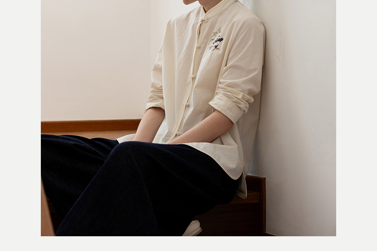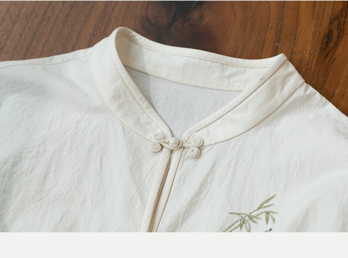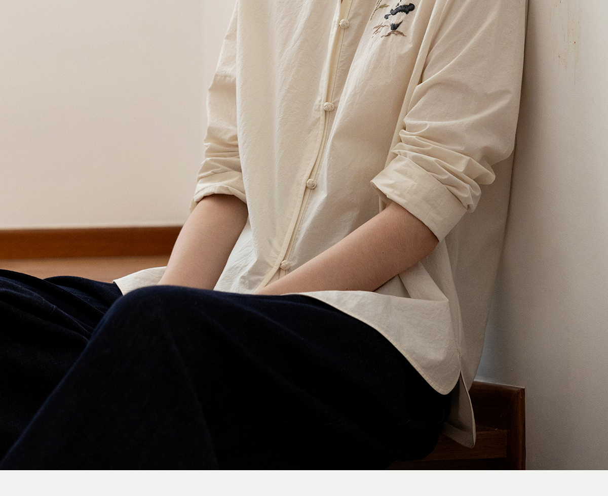 牧衣游原创 汉麻棉手工刺绣衬衫通勤百搭宽松白色文艺衬衣 隐衫