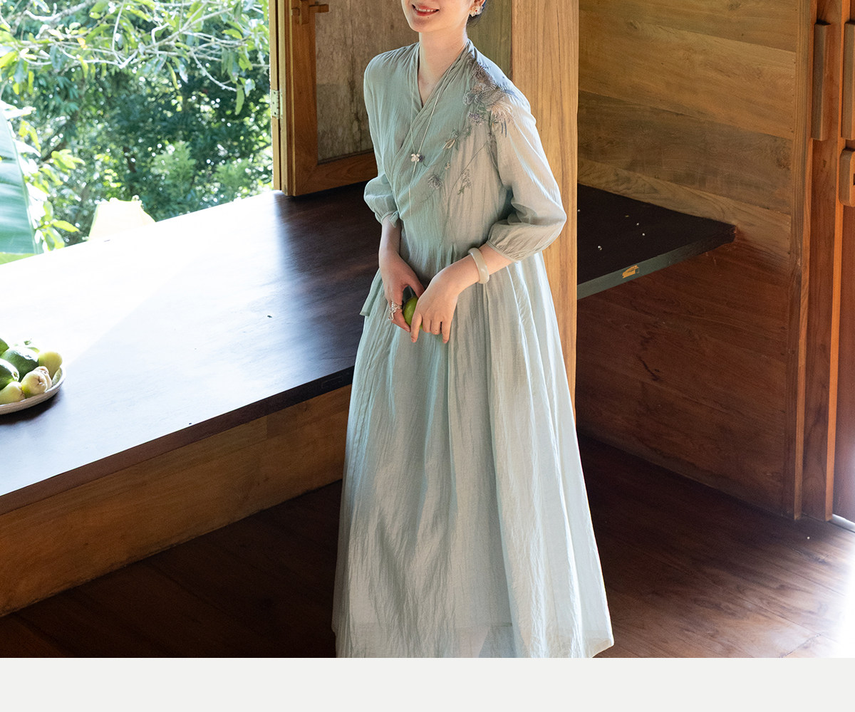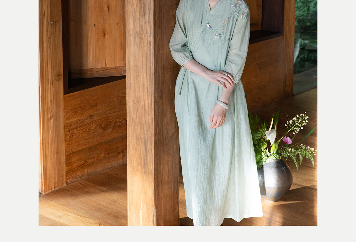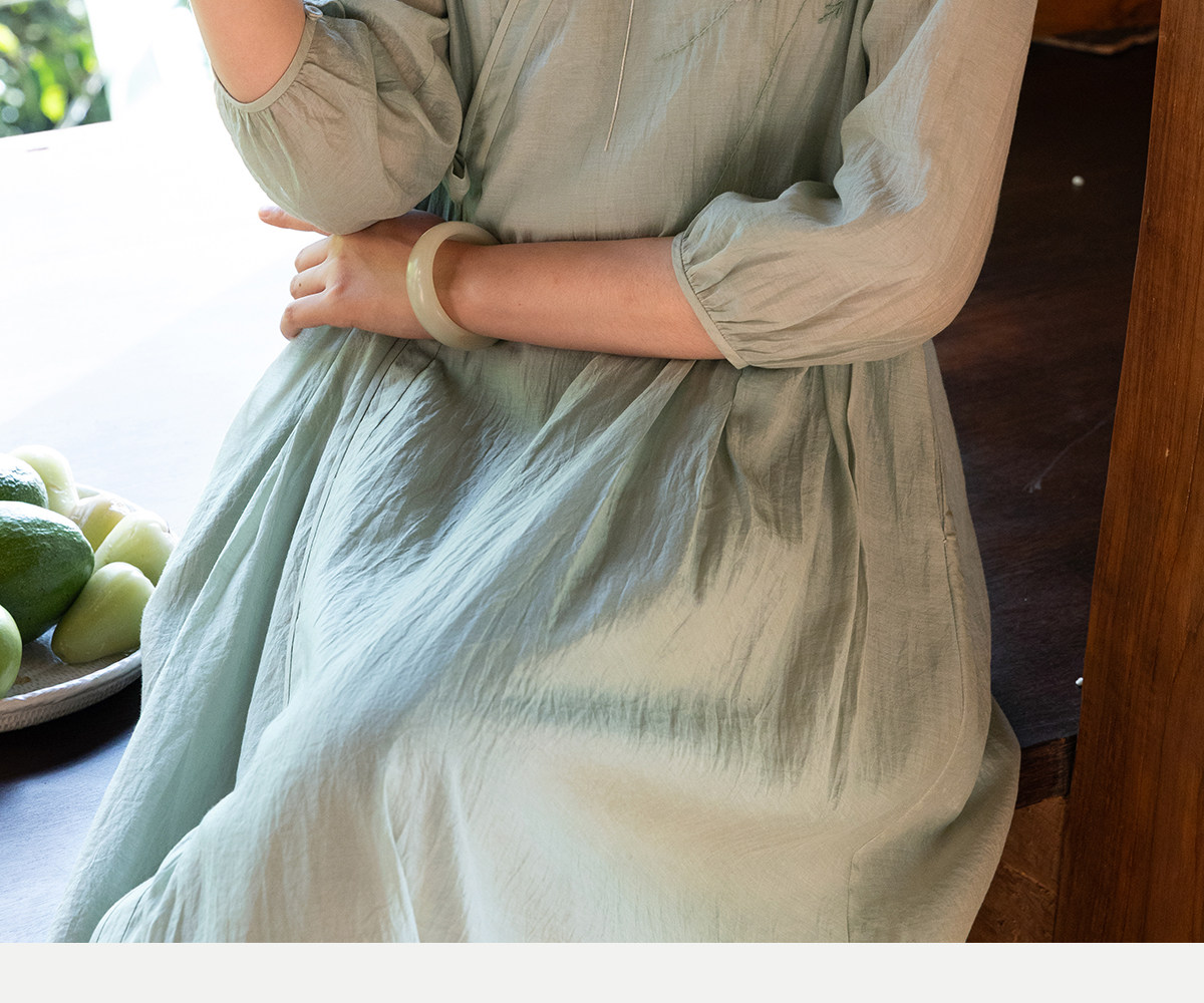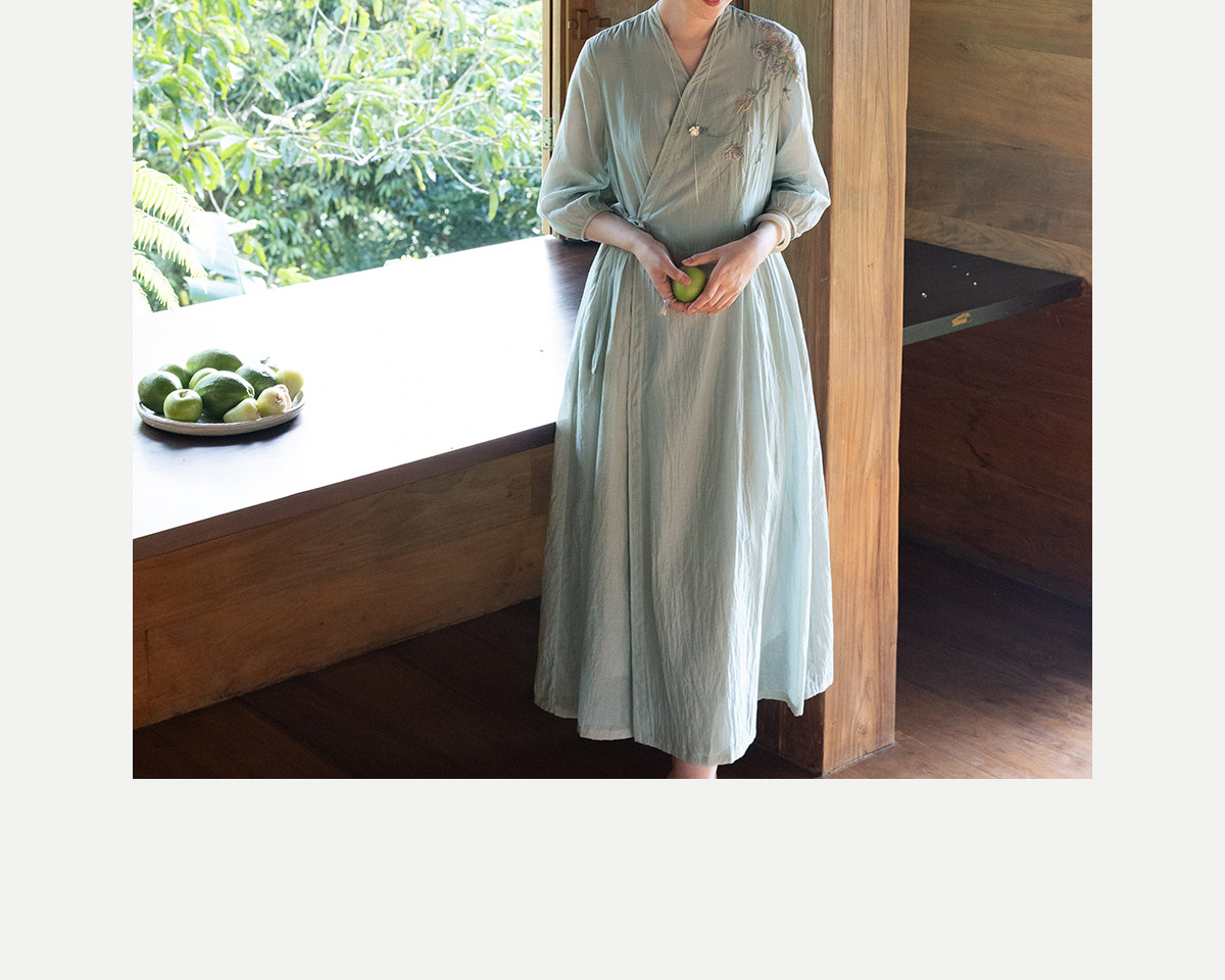 牧衣游原创 丝棉重工手绣连衣裙女新款宽松系带禅意复古长裙 北茉