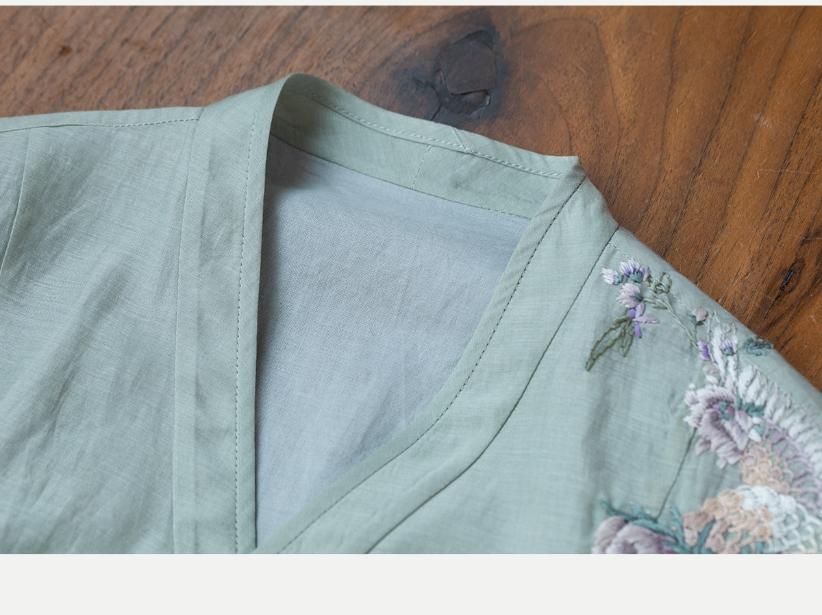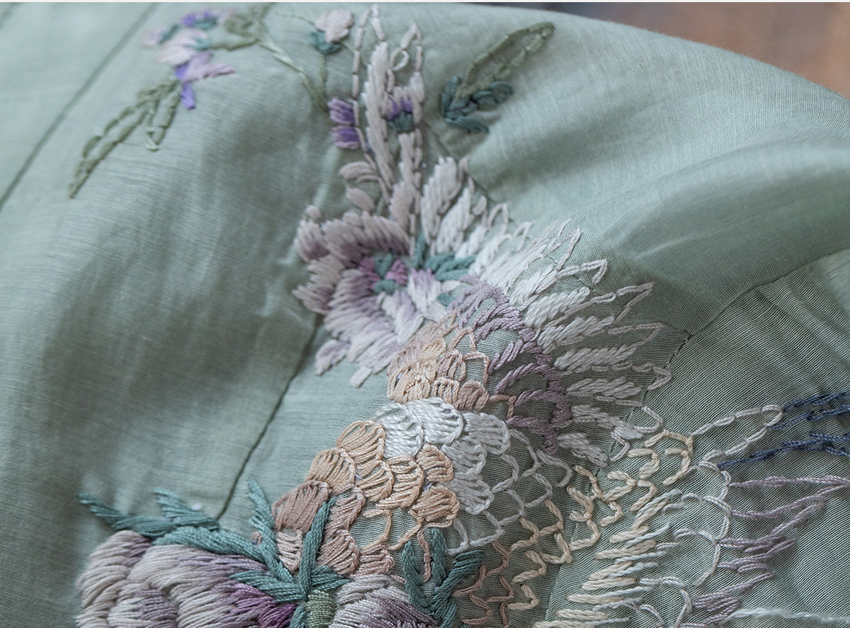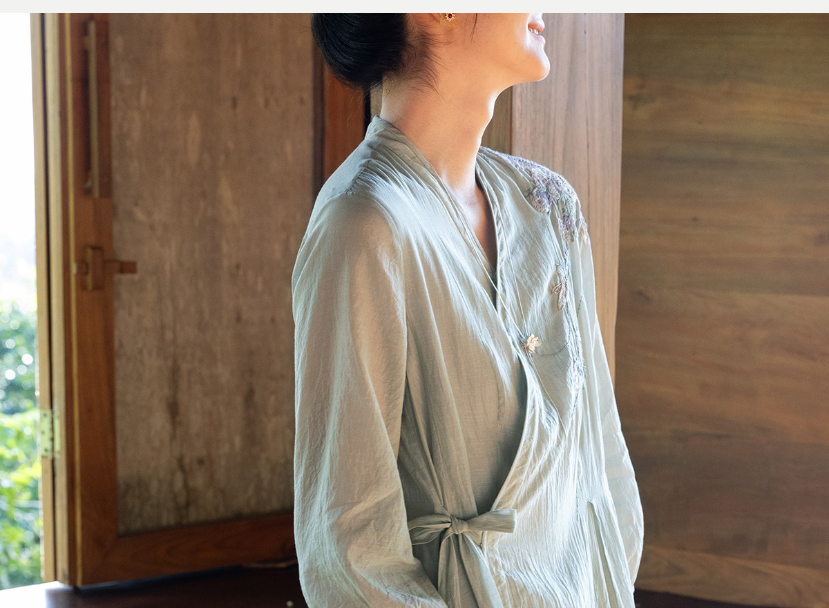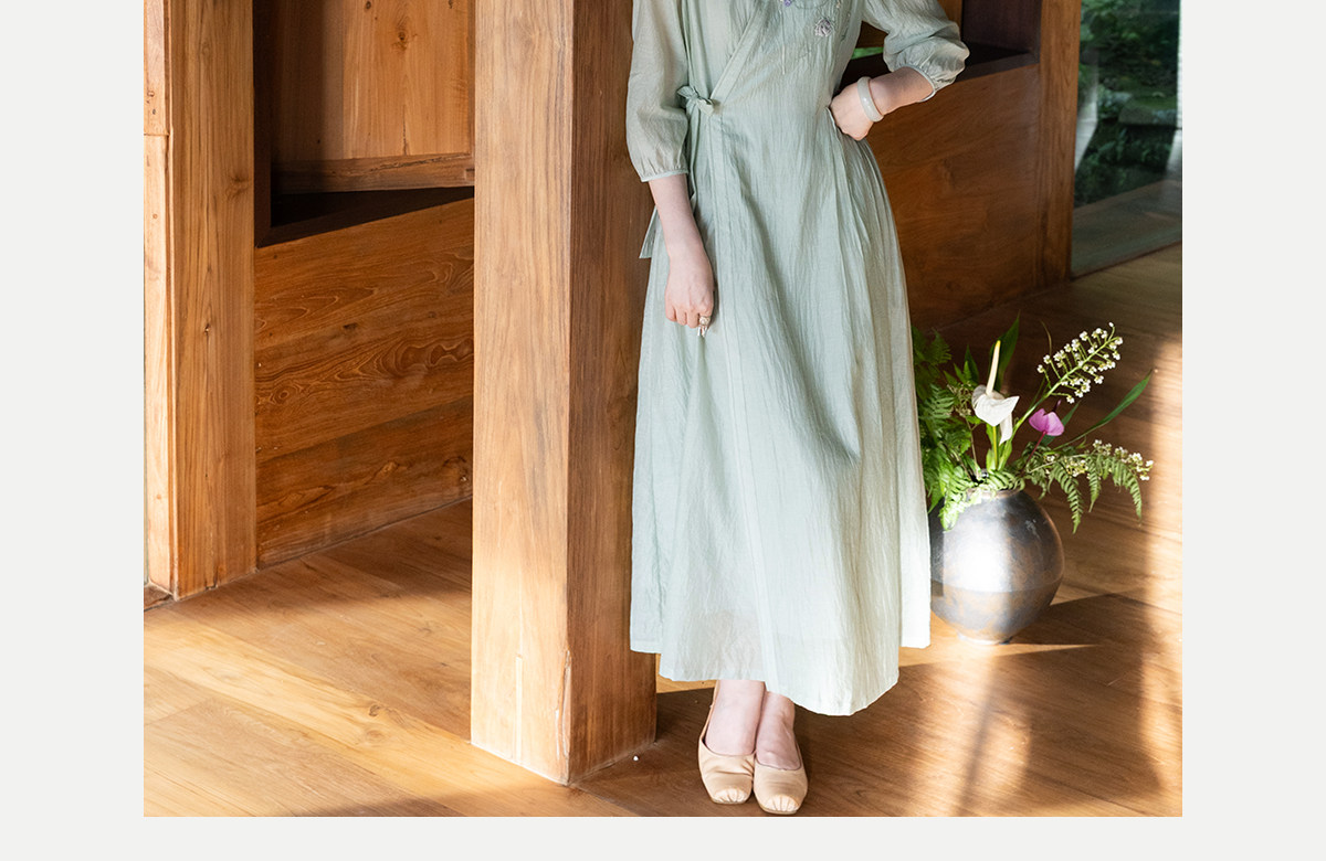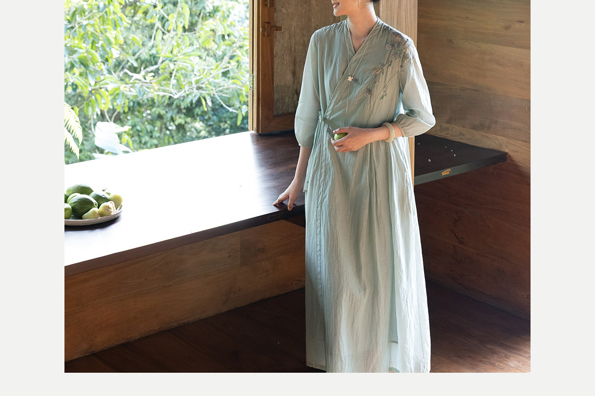 牧衣游原创 丝棉重工手绣连衣裙女新款宽松系带禅意复古长裙 北茉