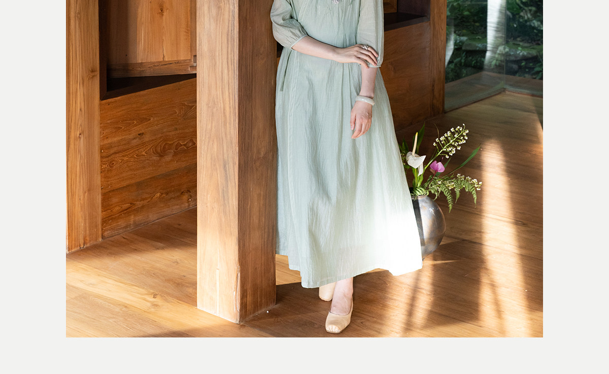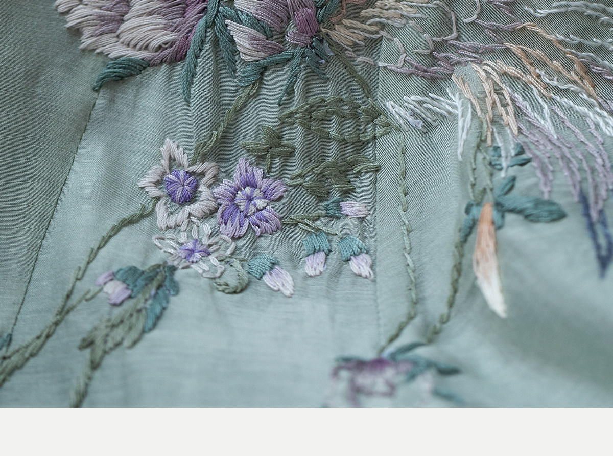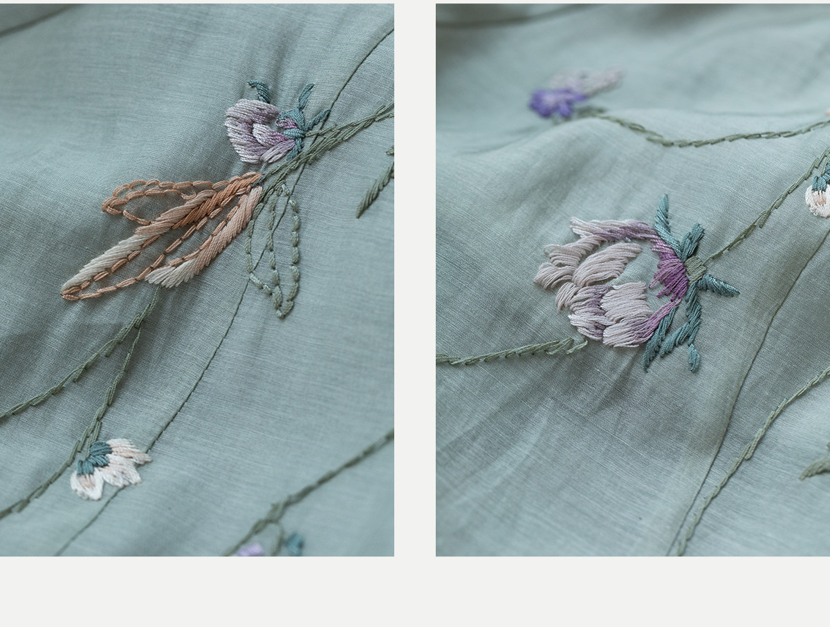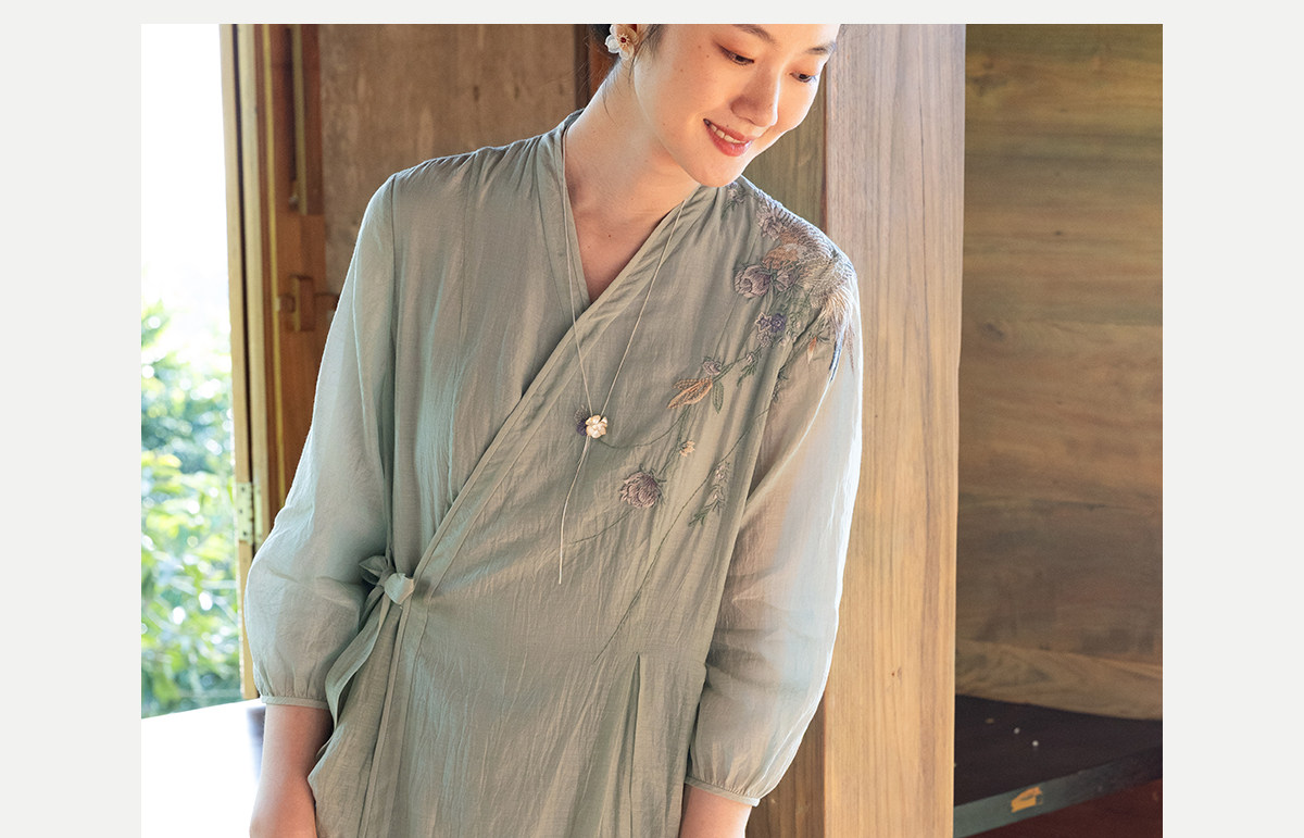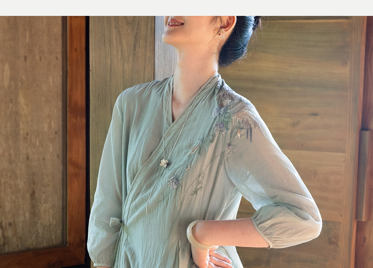 牧衣游原创 丝棉重工手绣连衣裙女新款宽松系带禅意复古长裙 北茉