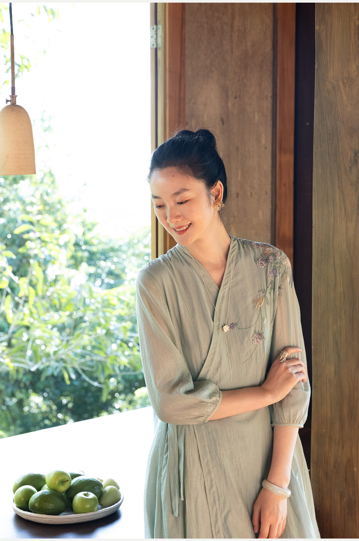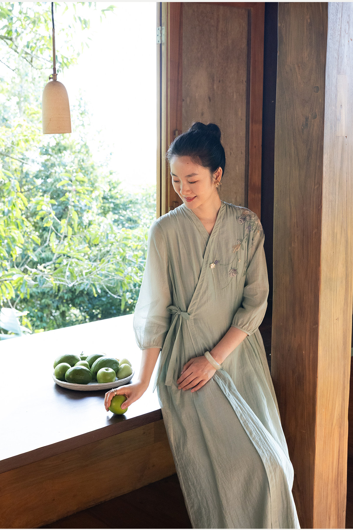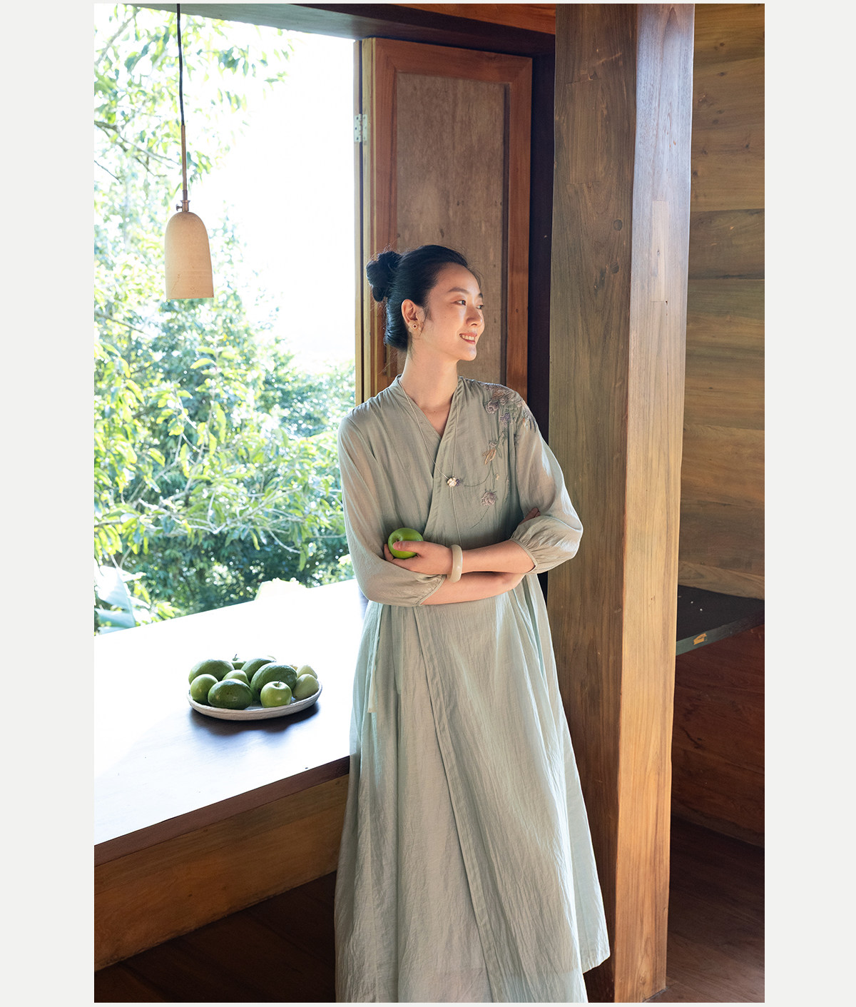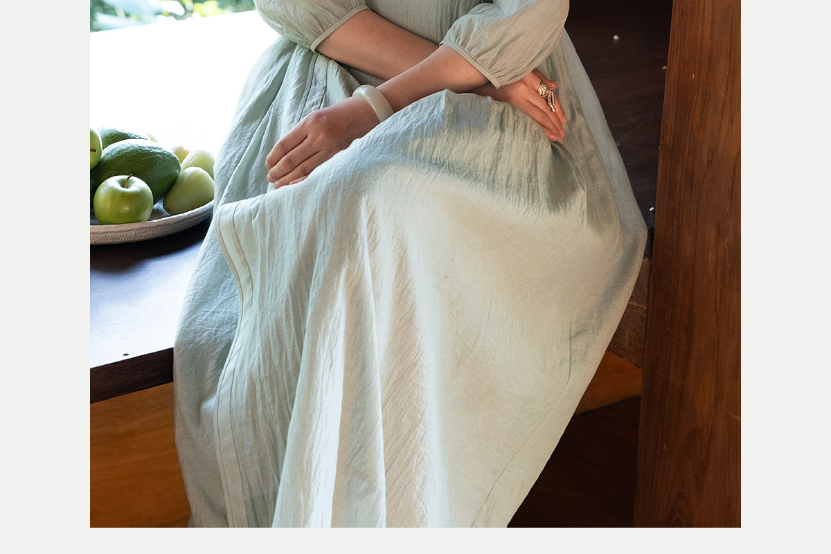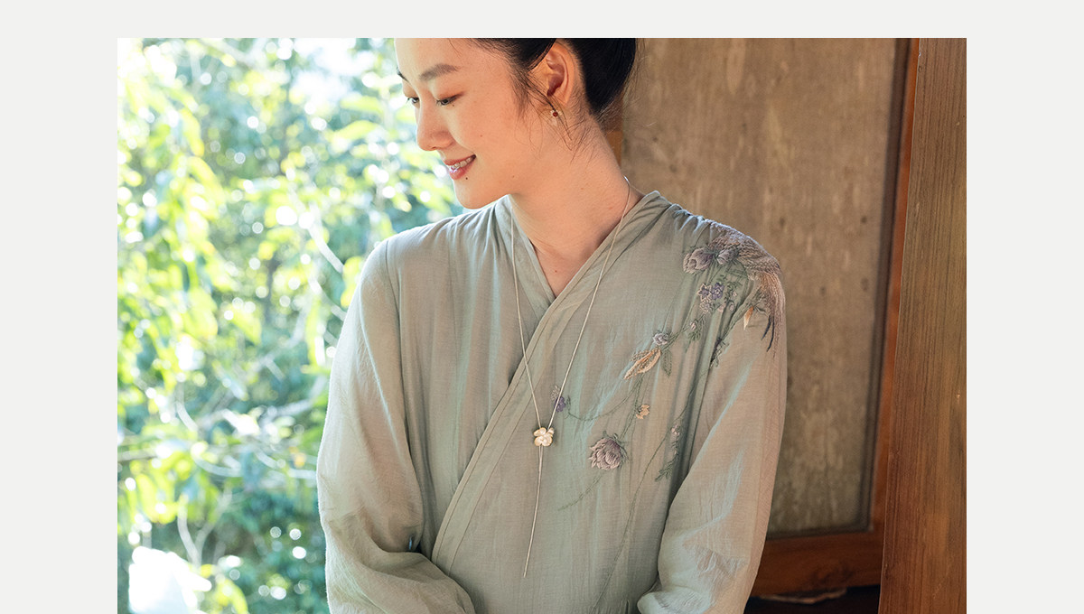 牧衣游原创 丝棉重工手绣连衣裙女新款宽松系带禅意复古长裙 北茉
