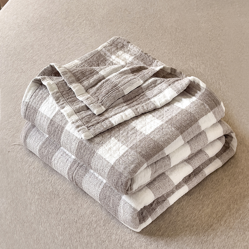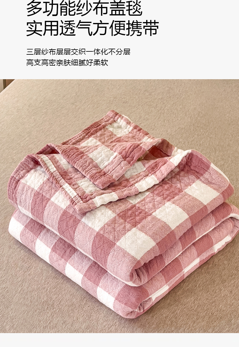 【多样屋专柜】多样屋全棉小格毛巾被/枕套-粉,灰,蓝3色任选150*200cm/200*230cm