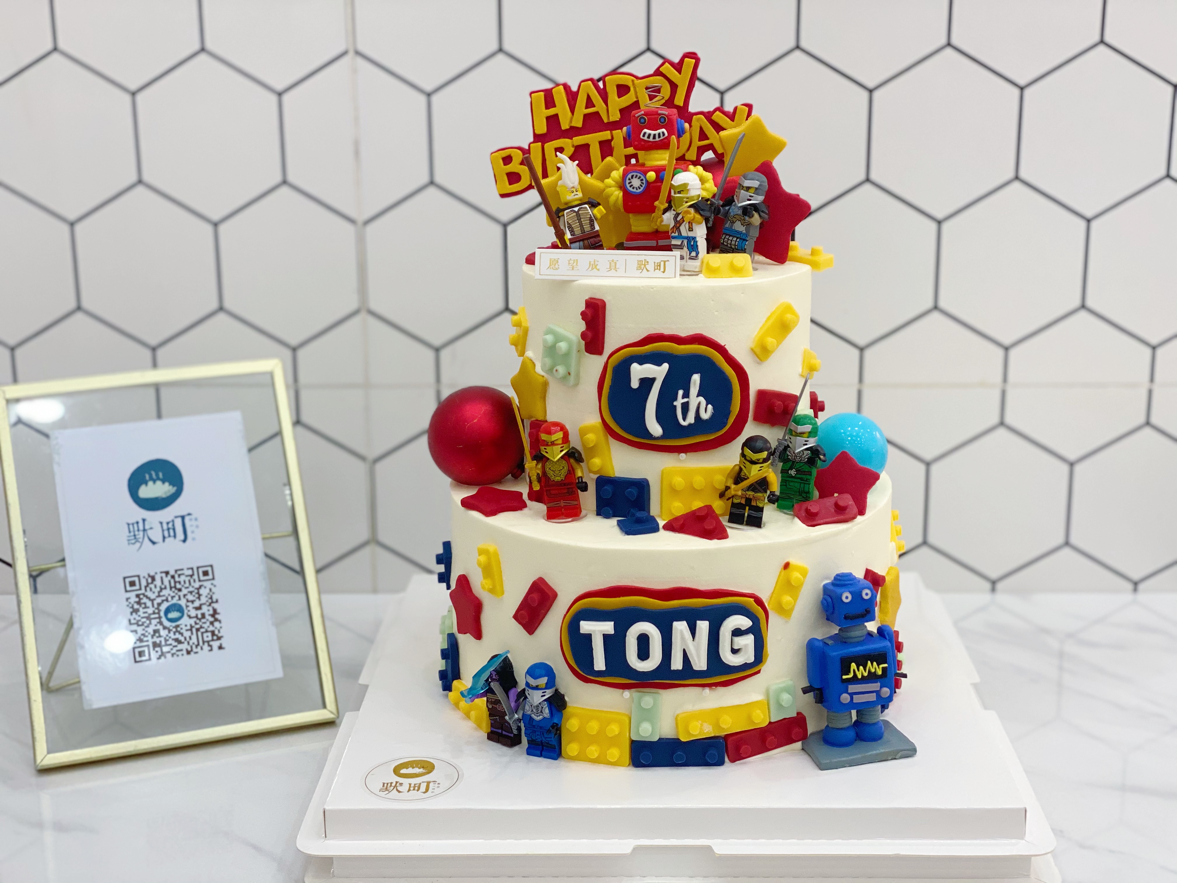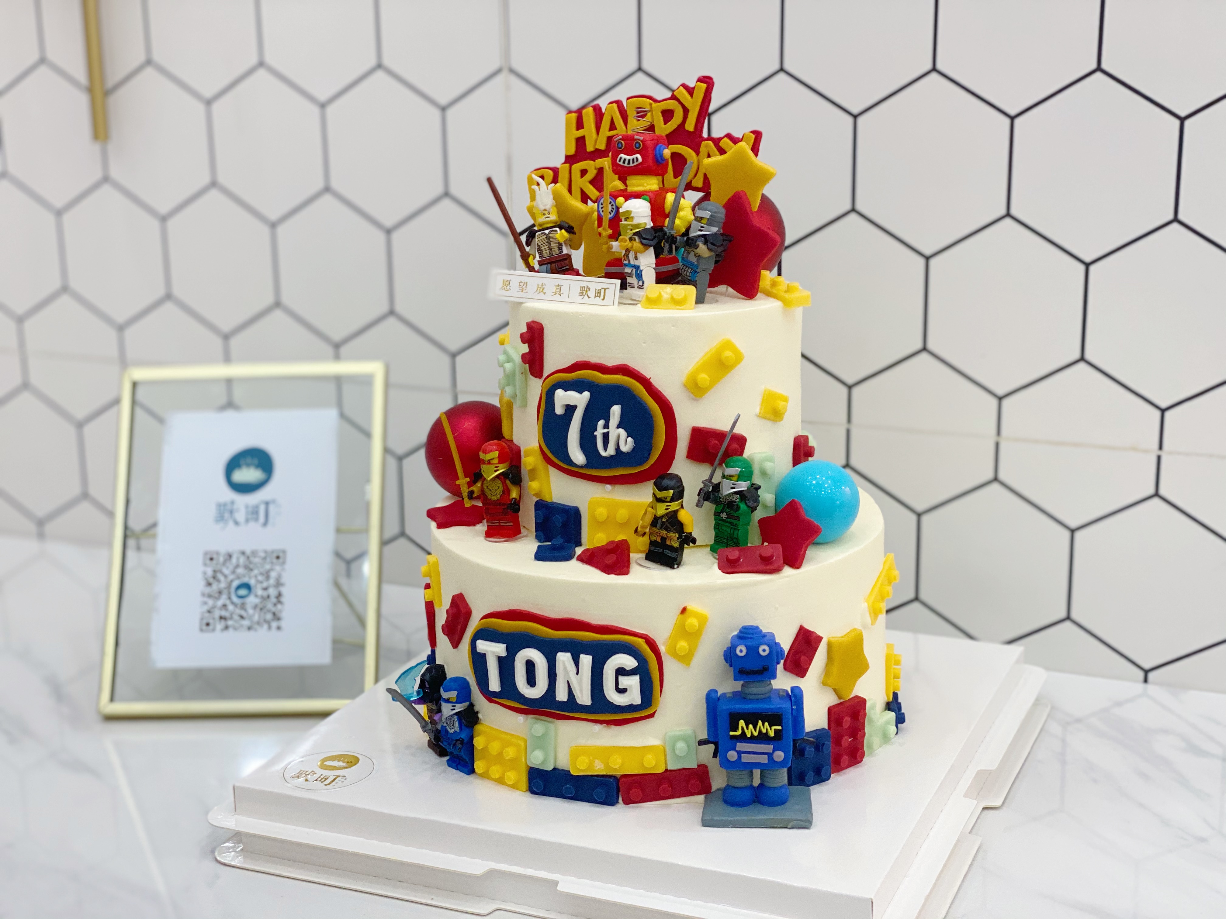 五彩缤纷乐高主题双层蛋糕