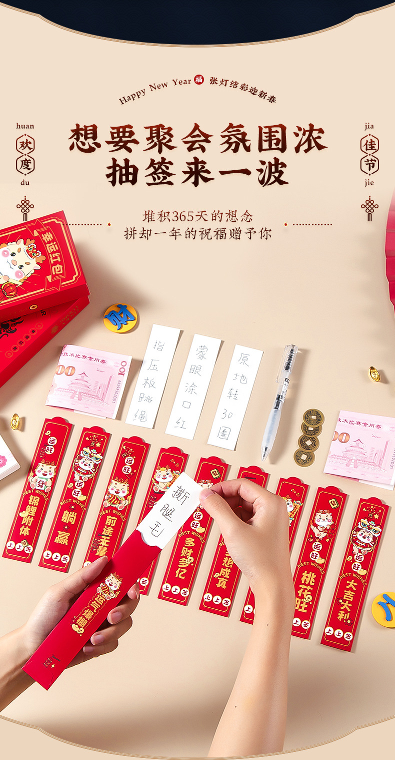 「9.9元包邮!盲盒红包12抽」2024龙年盲盒抽签红包袋团建小游戏利是封幸运签创意聚会