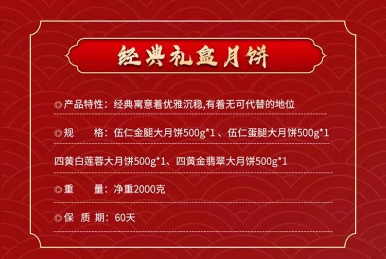 金九经典礼盒月饼2000g伍仁金腿白莲蓉月饼糕点中秋节团购送礼 【经典礼盒月饼2000g】