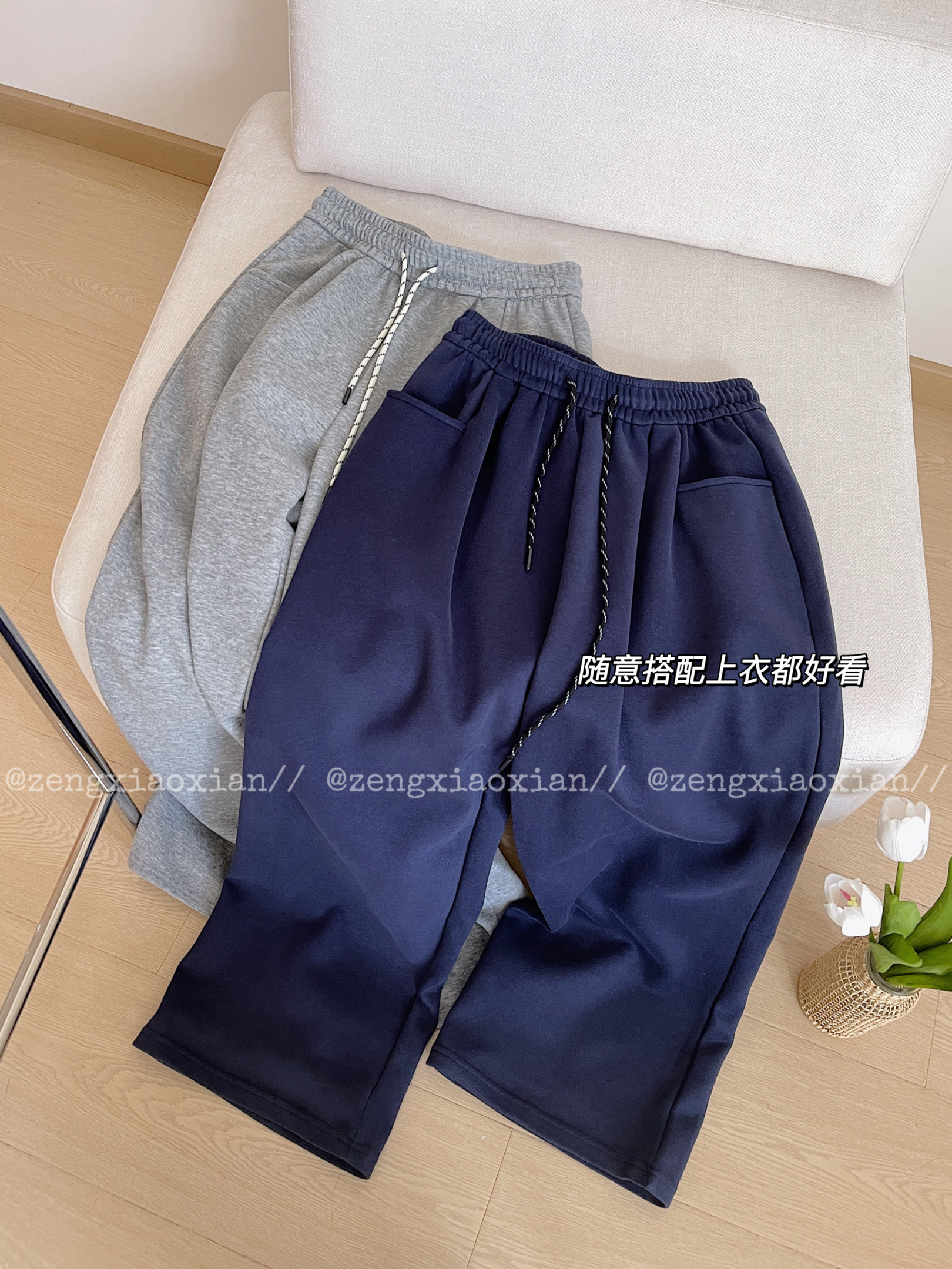 <曾小咸推荐>慵懒风抽绳休闲阔腿裤