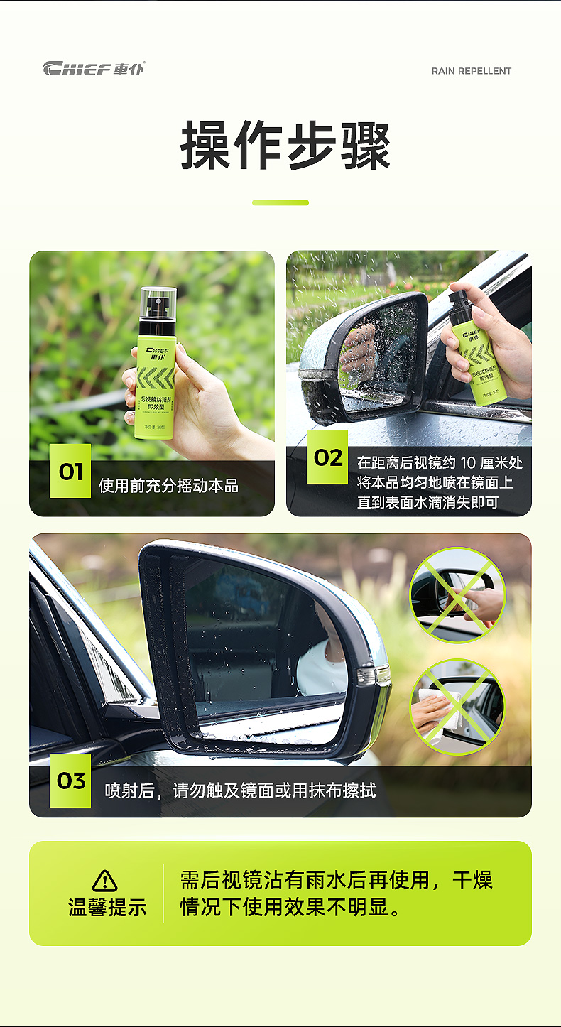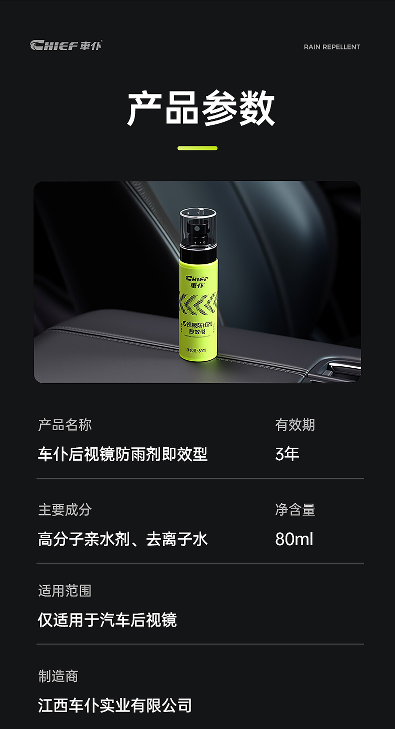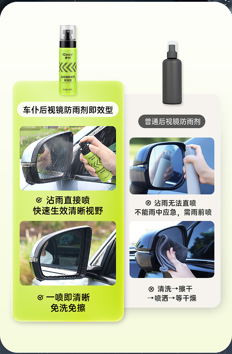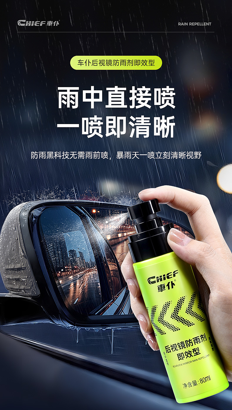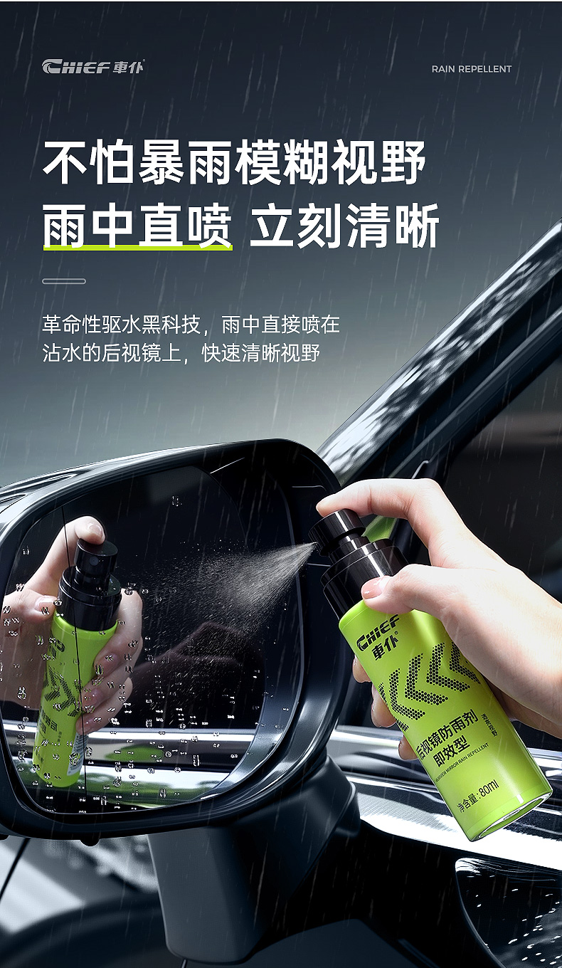 车仆汽车玻璃防雨剂即效型后视镜亲水剂防雨水神器