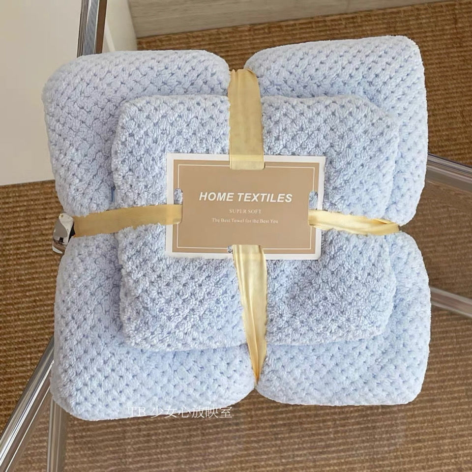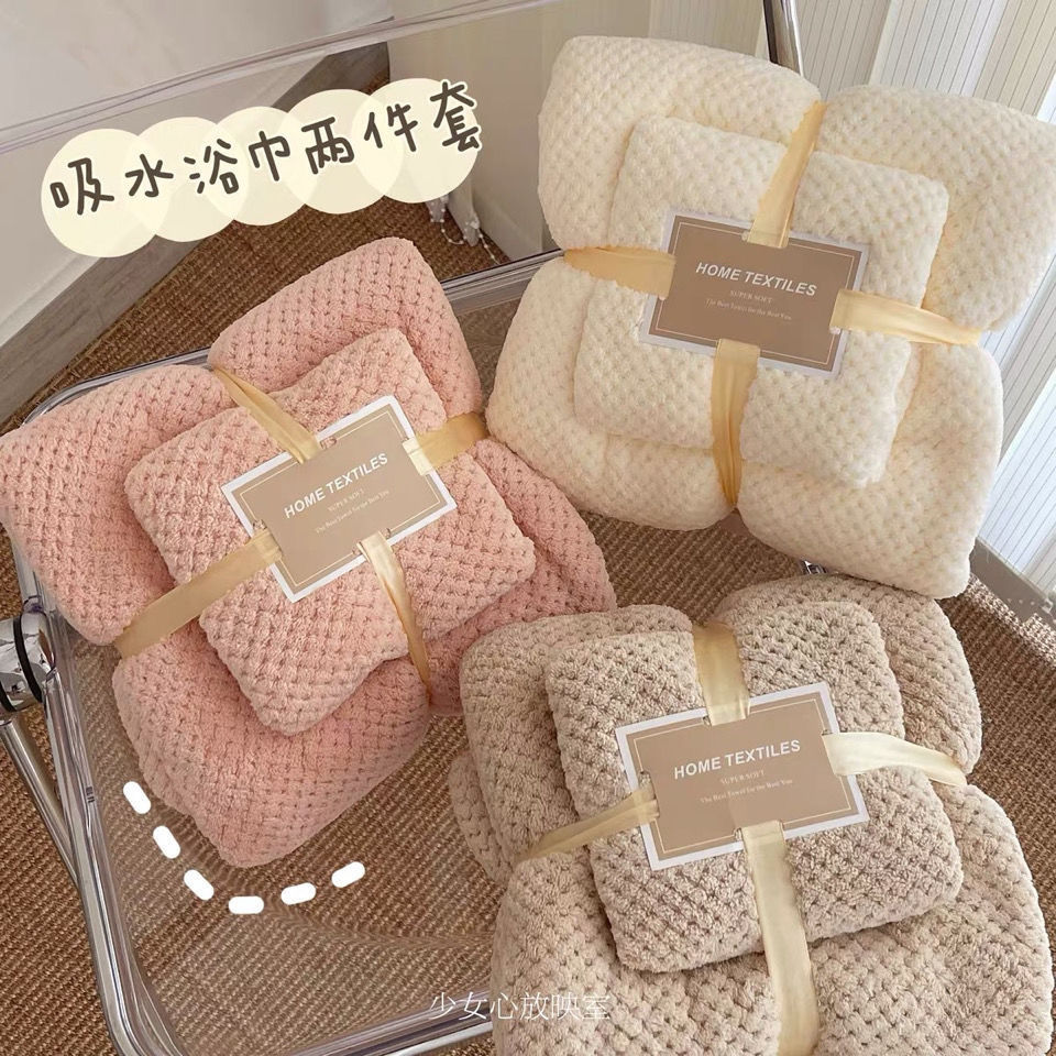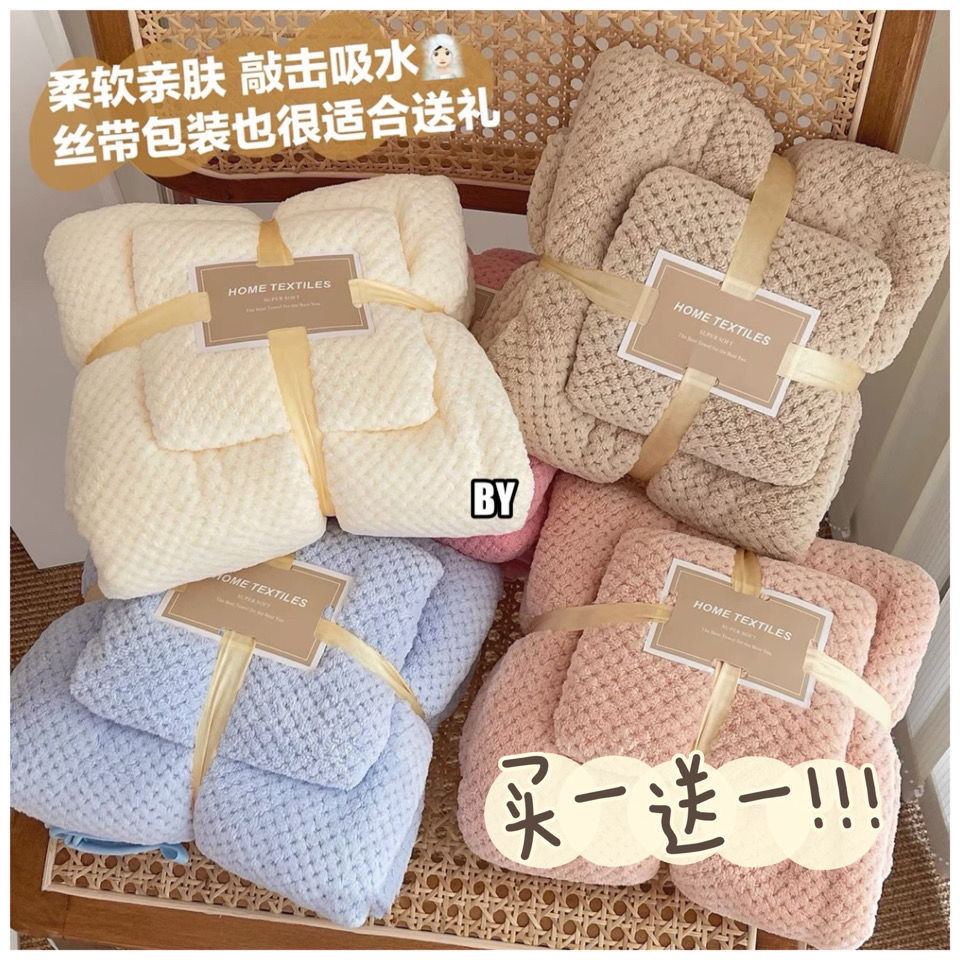 「浴巾+毛巾」柔软吸水菠萝格浴巾大毛巾套装居家布艺可穿可裹纯色浴袍女