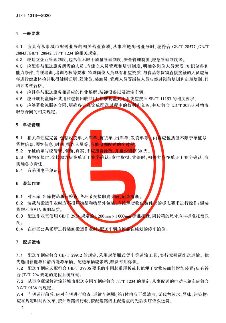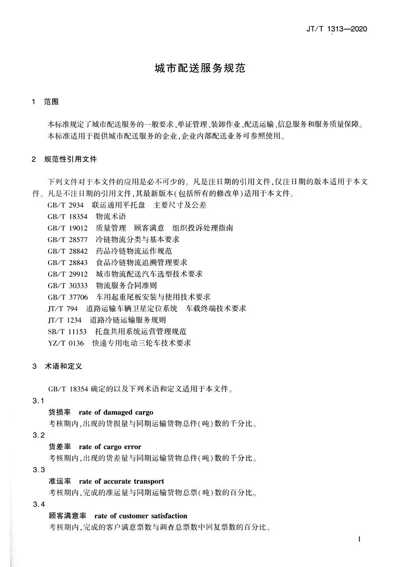 | 城市配送服务规范(JT/T 1313——2020) | ||