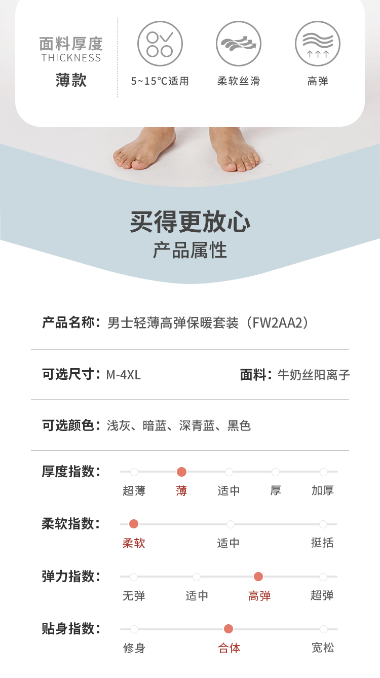 都市丽人都市锋尚轻暖保暖内衣男5至15度适穿美肌内衣牛奶丝单面保暖衣FW2AA2