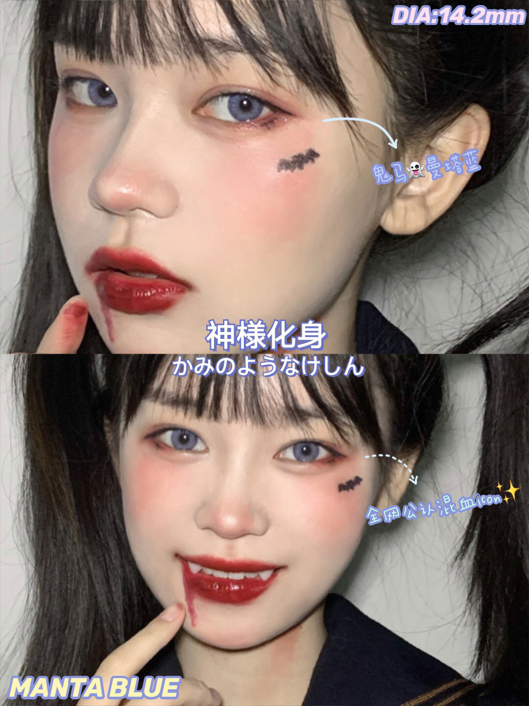 【年抛】曼塔蓝 Breeze和oiuu | 中直径14.2,着色13.5 |混血美瞳 蓝色美瞳