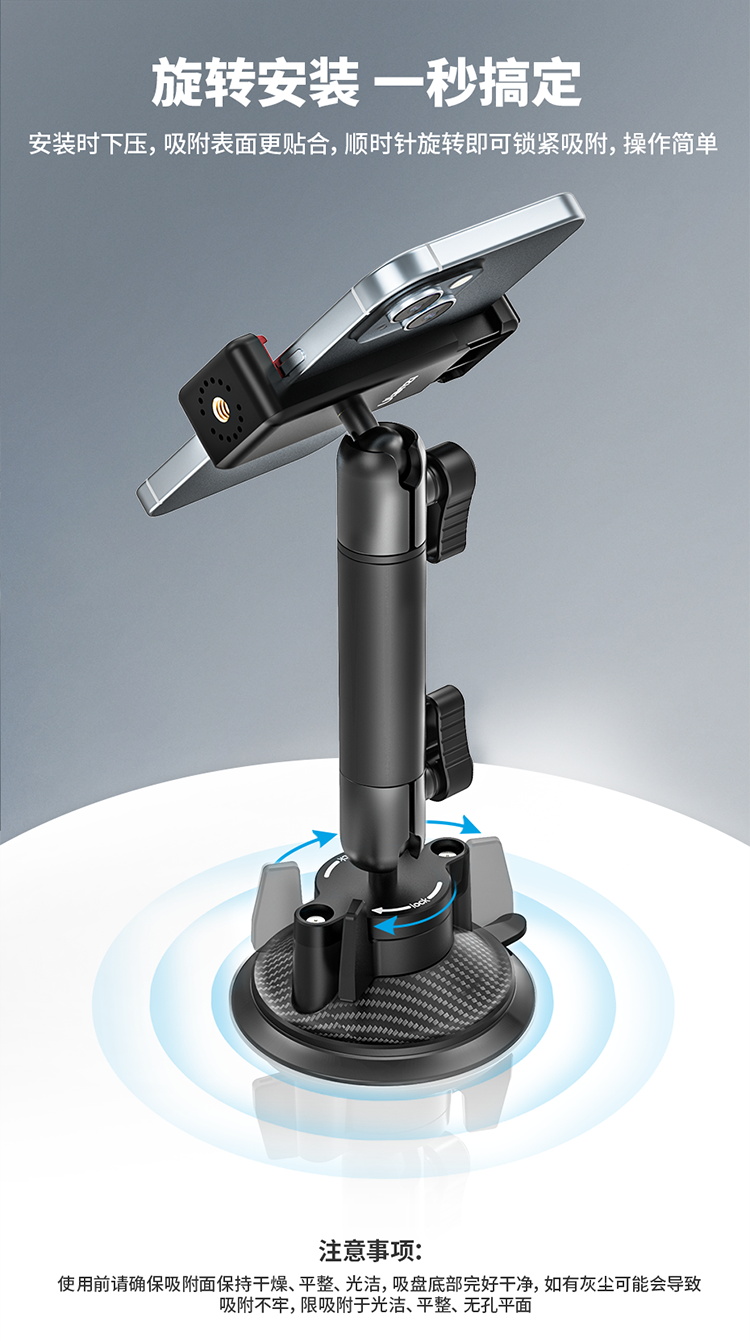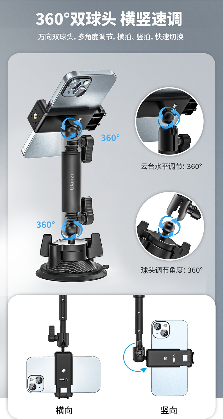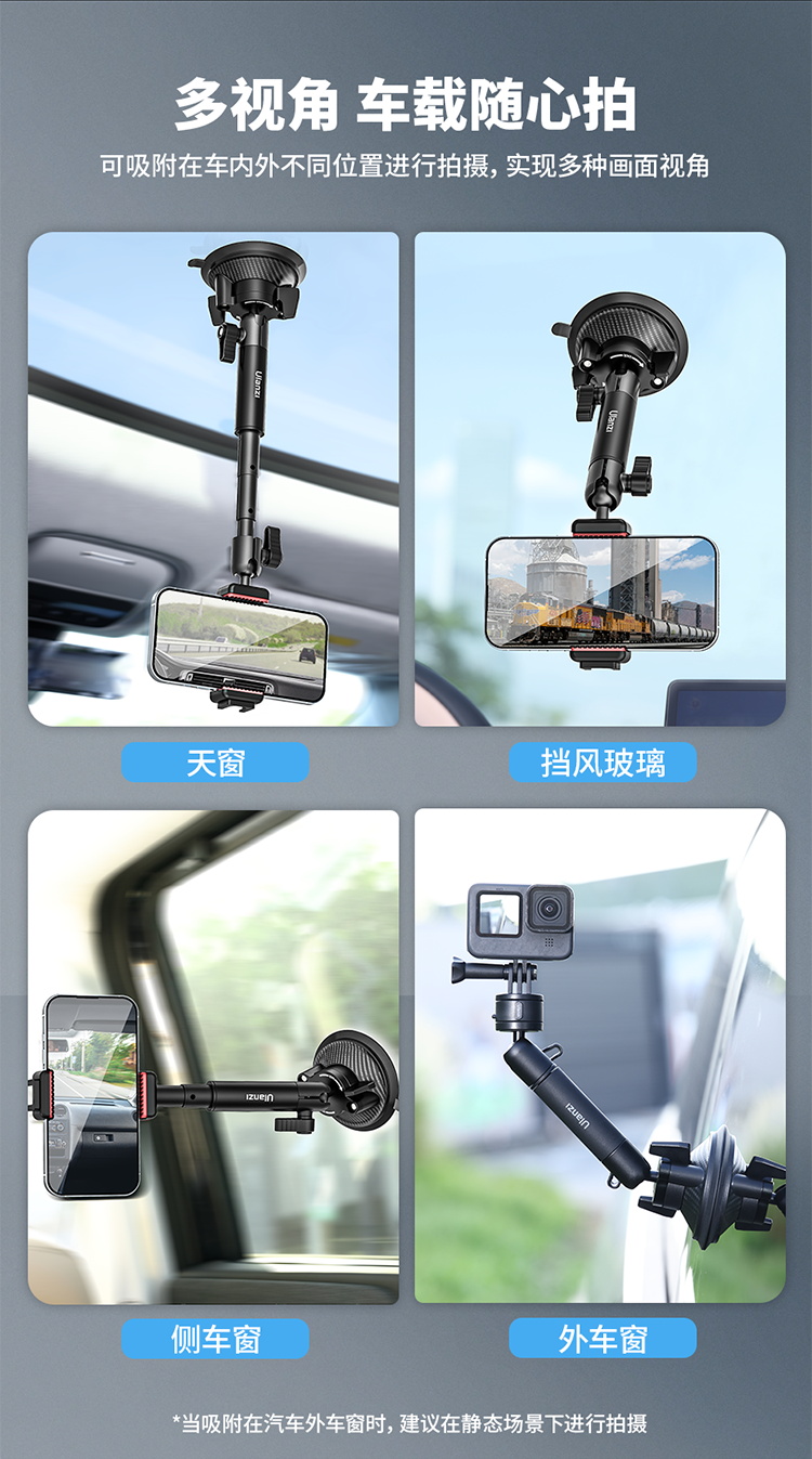 Ulanzi优篮子Go quick Ⅱ代ZJ01吸盘伸缩支架车载拍摄支架手机大疆Pocket3运动相机云台万向魔术手吸盘支架