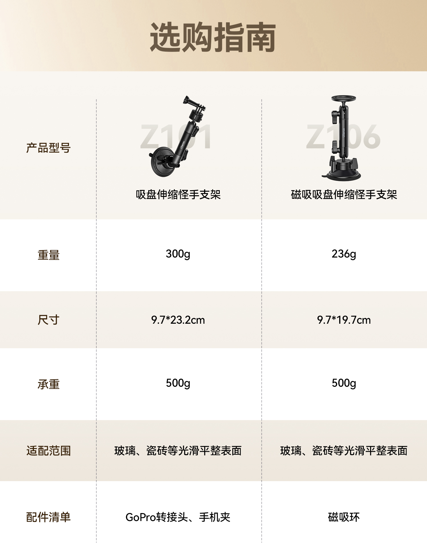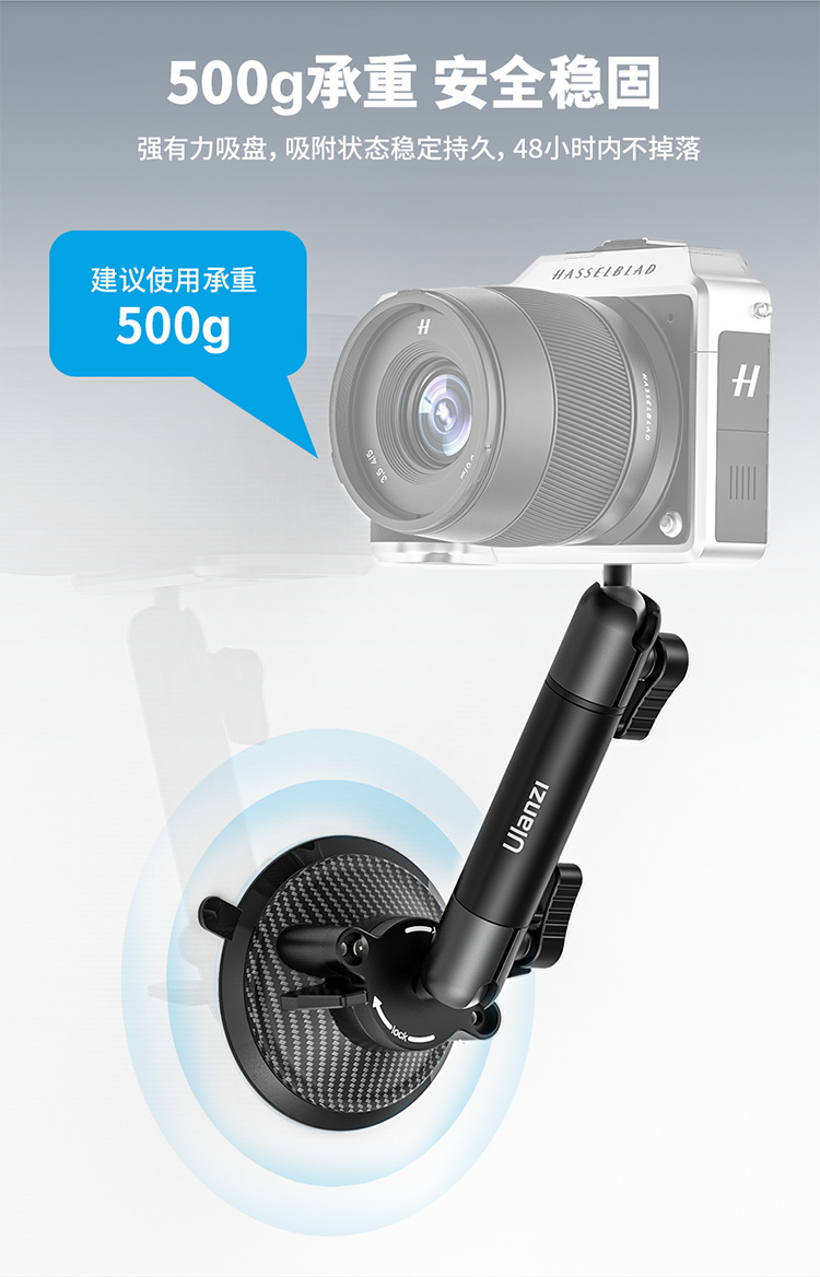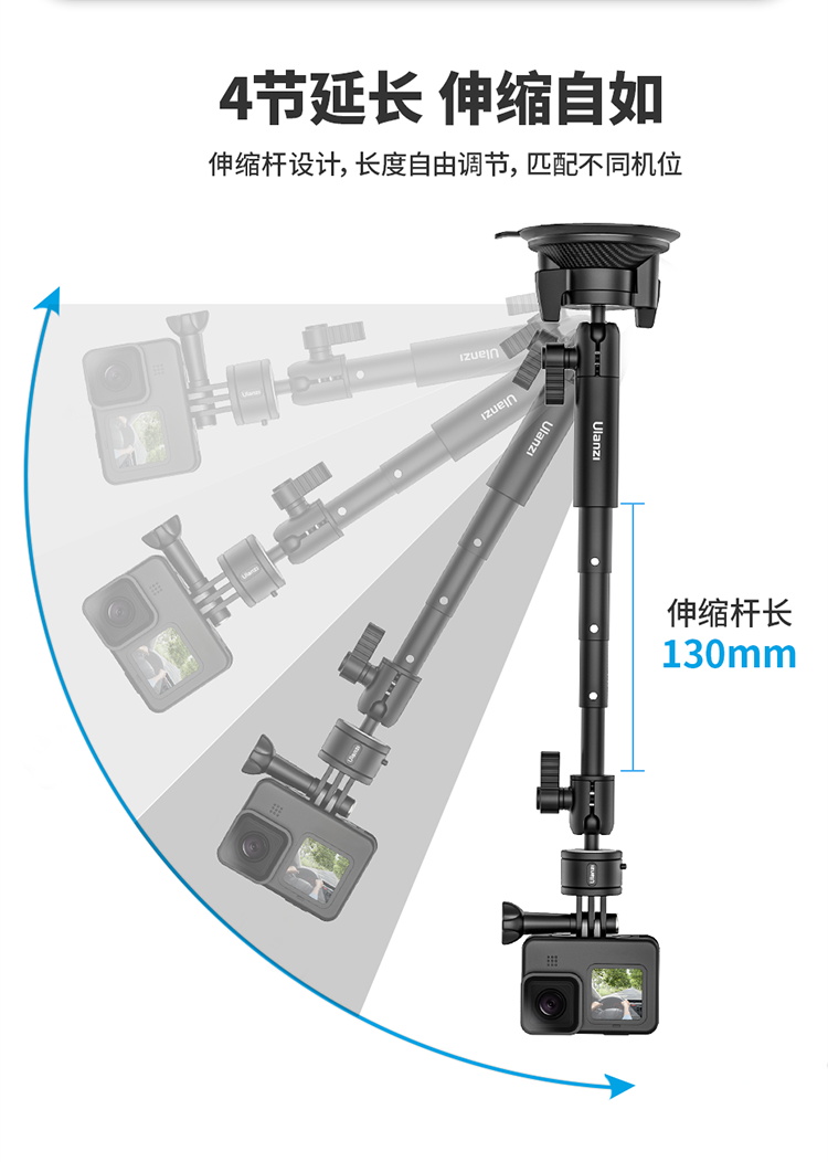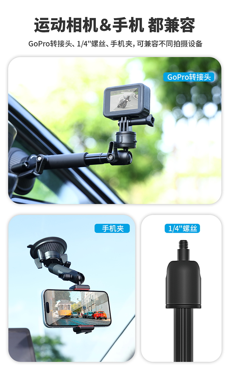 Ulanzi优篮子Go quick Ⅱ代ZJ01吸盘伸缩支架车载拍摄支架手机大疆Pocket3运动相机云台万向魔术手吸盘支架
