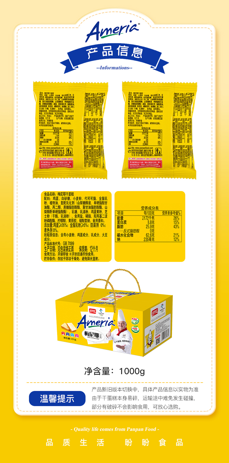 盼盼梅尼耶干蛋糕(奶香味) 1000g