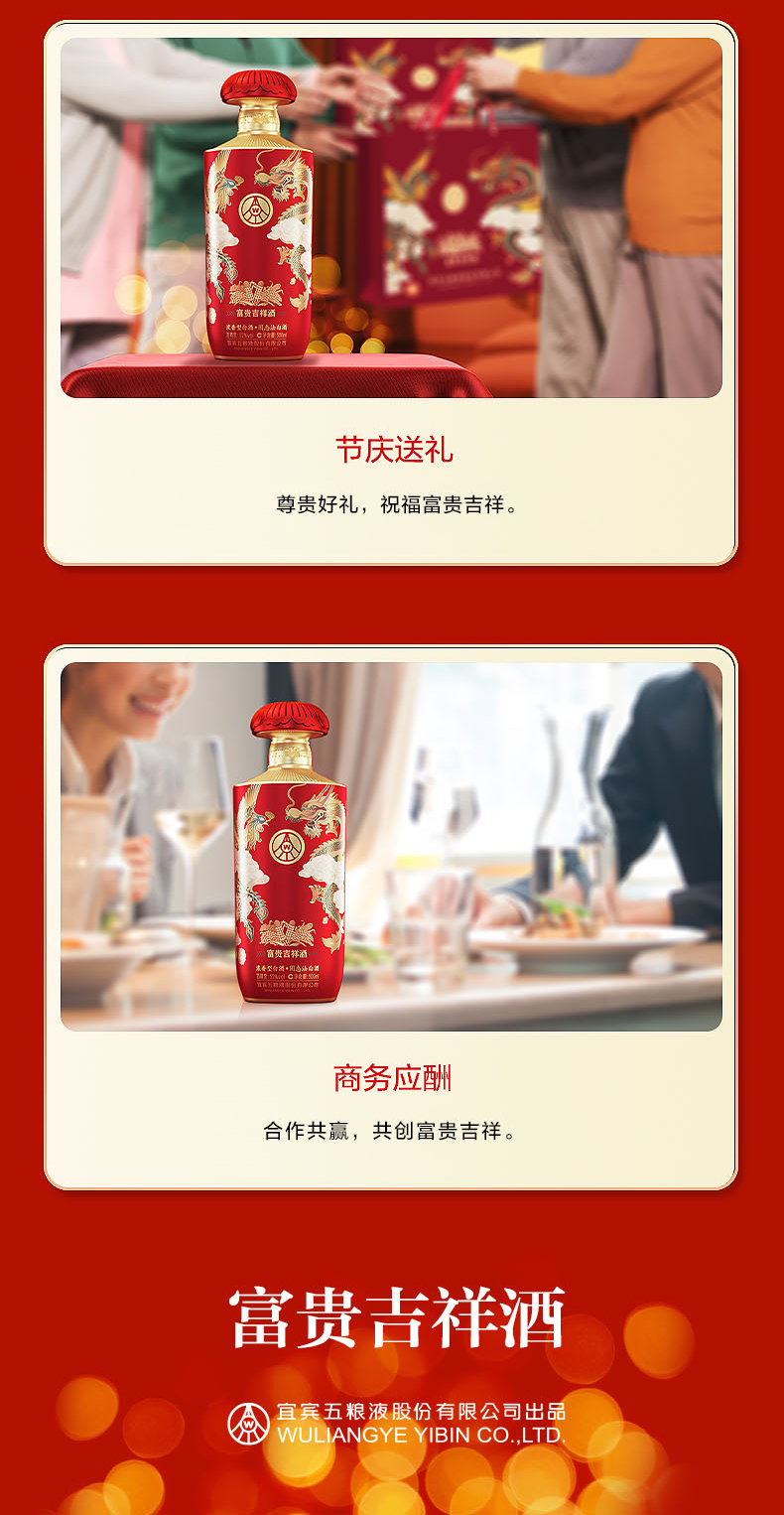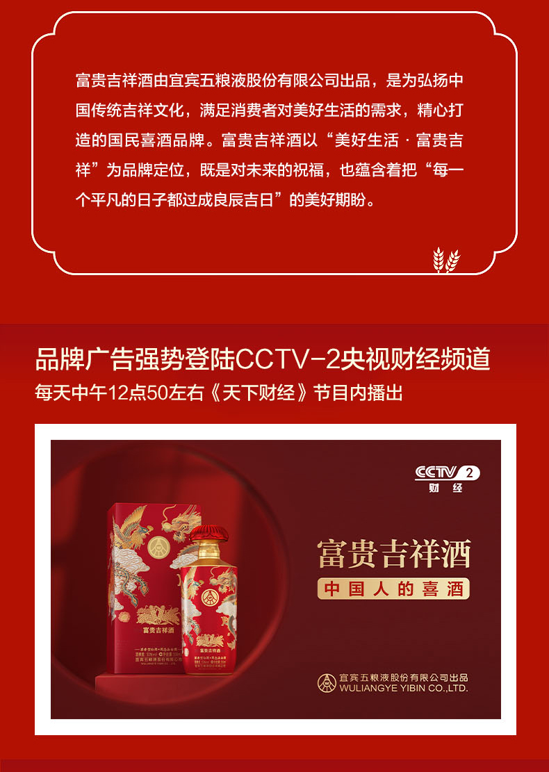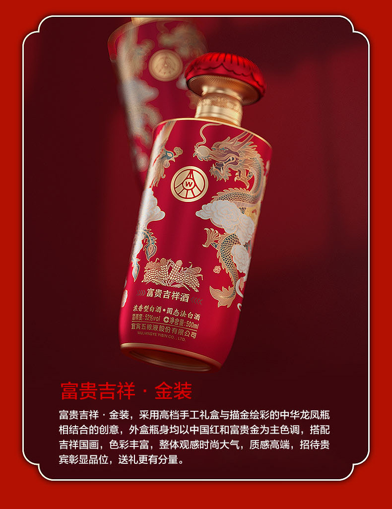 五粮液股份富贵吉祥金装 52度500ml*2瓶浓香型固态法纯粮食白酒