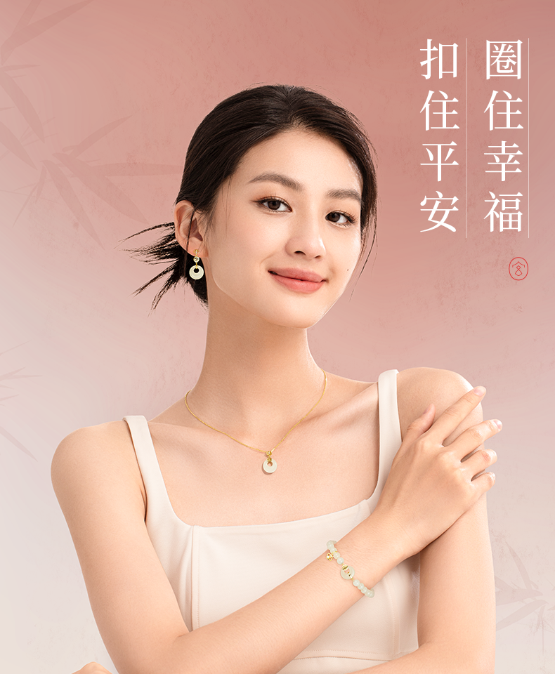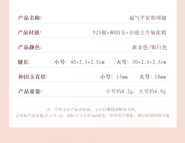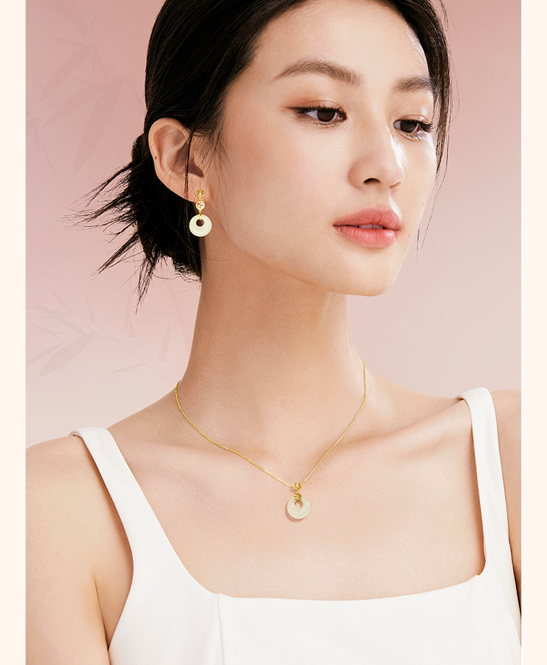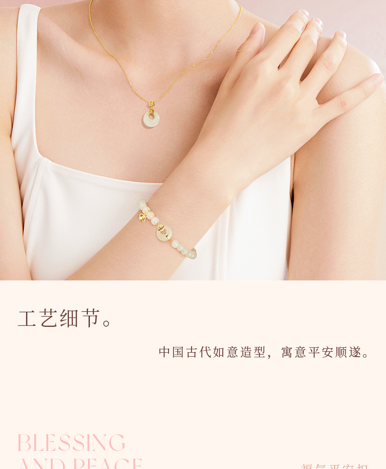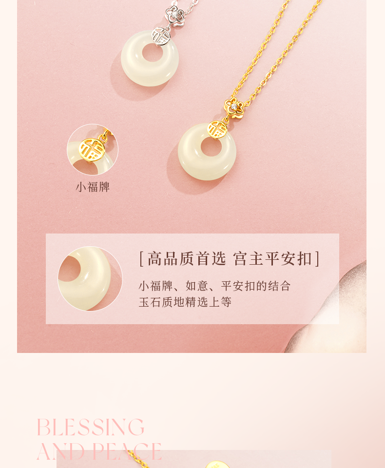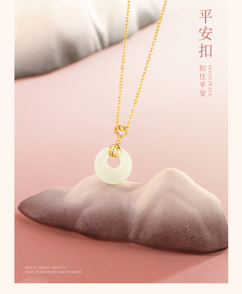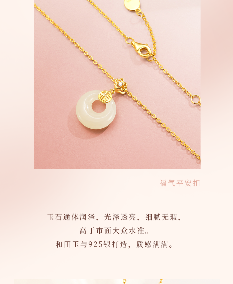 Fanci范琦×宫主【福气平安扣项链】和田玉吊坠项链女银镶嵌玉石锁骨链轻奢小众饰品生日礼物 新年礼物送妈妈送女友