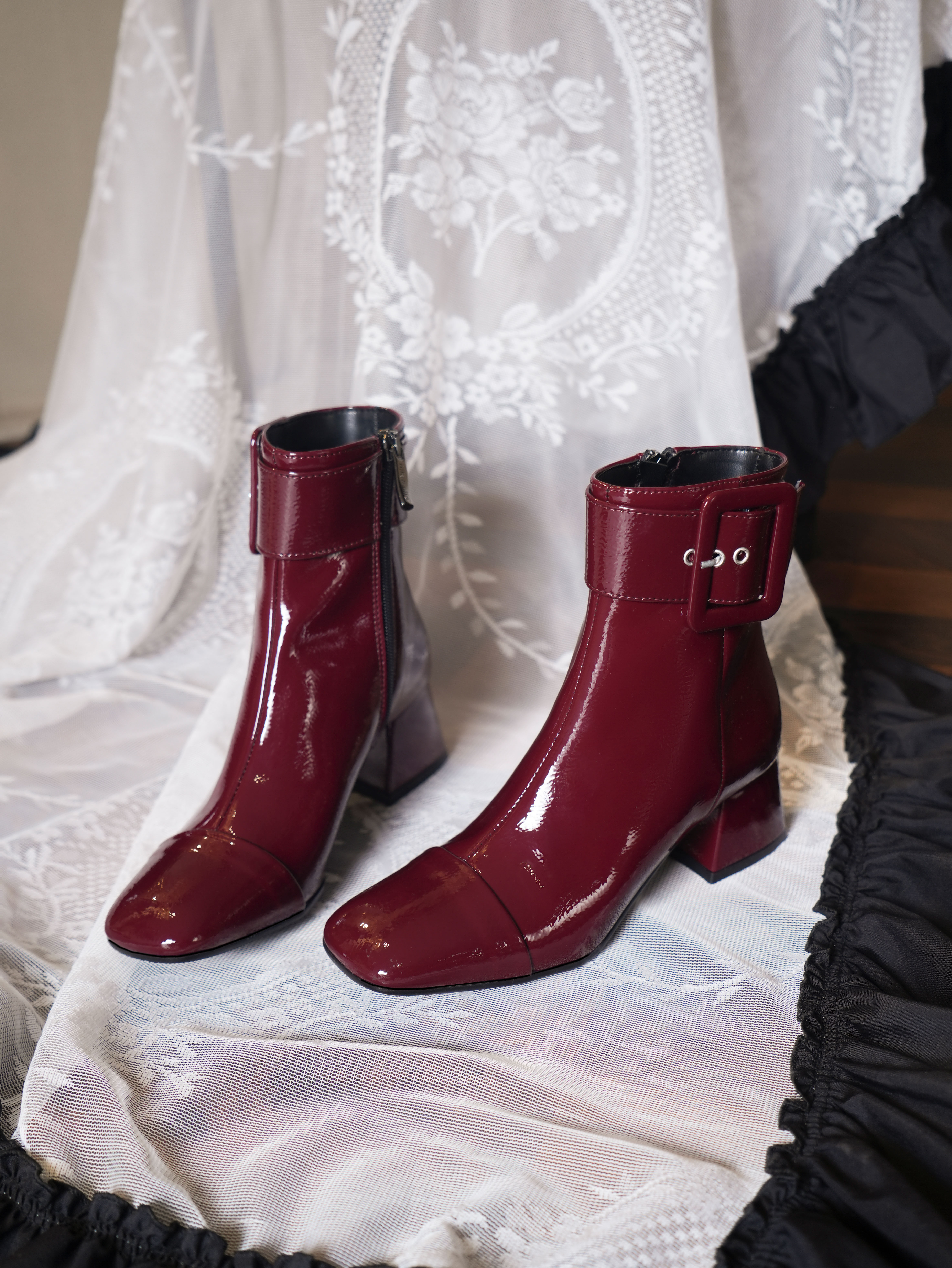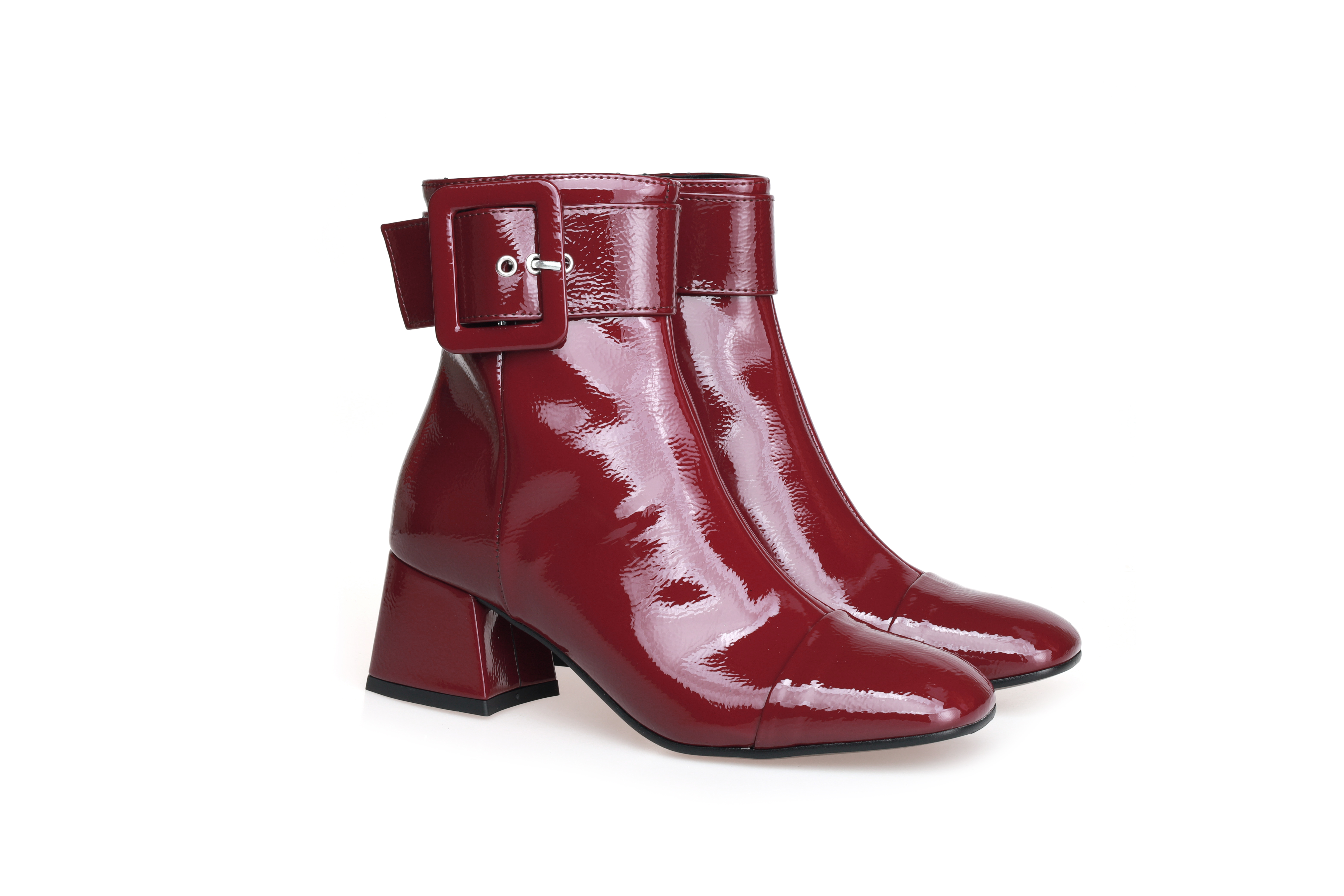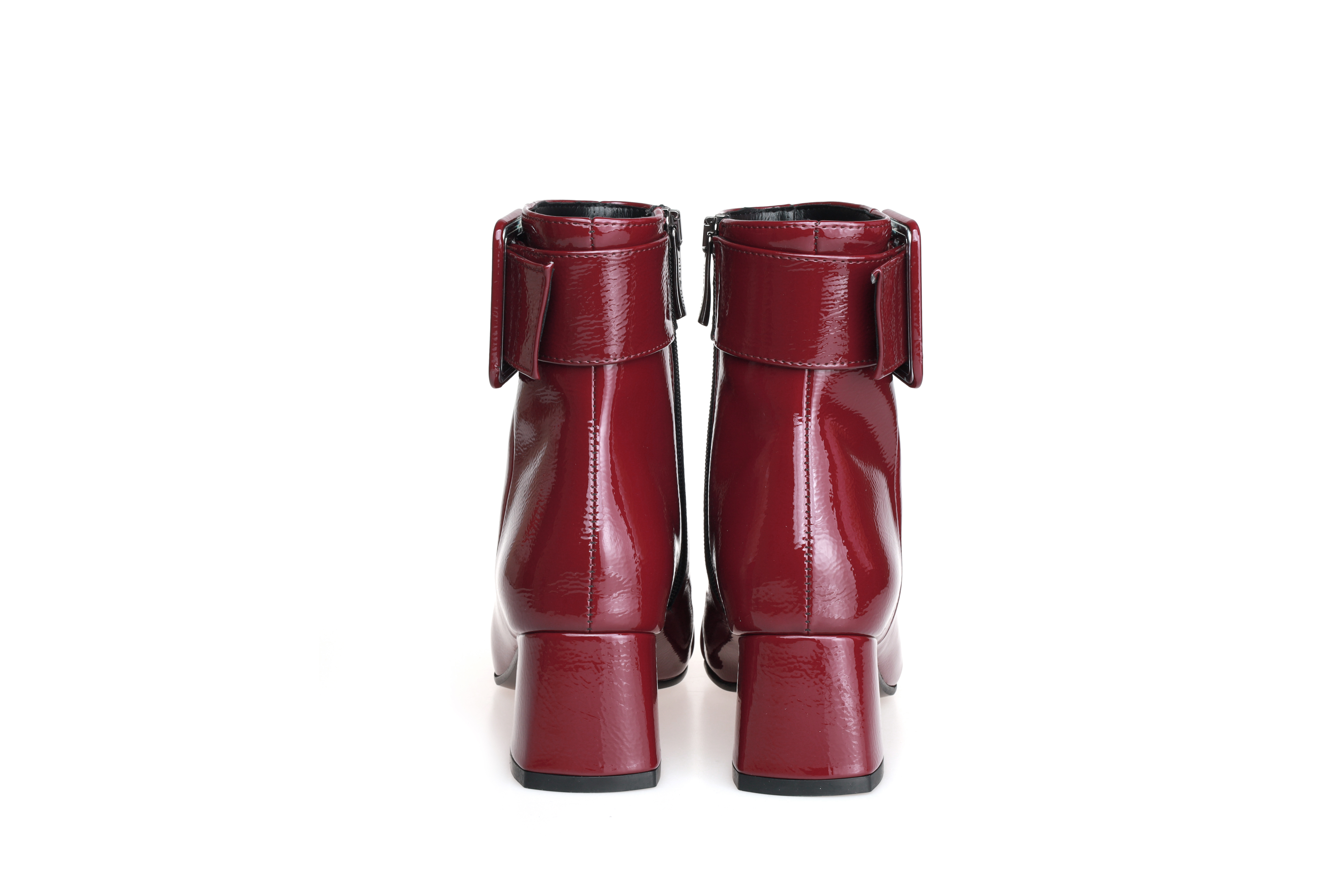 豪麟名鞋NILA&NILA女鞋短靴牛移膜革PA649酒红色