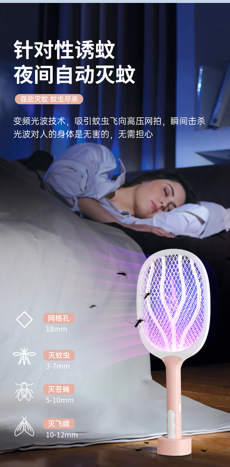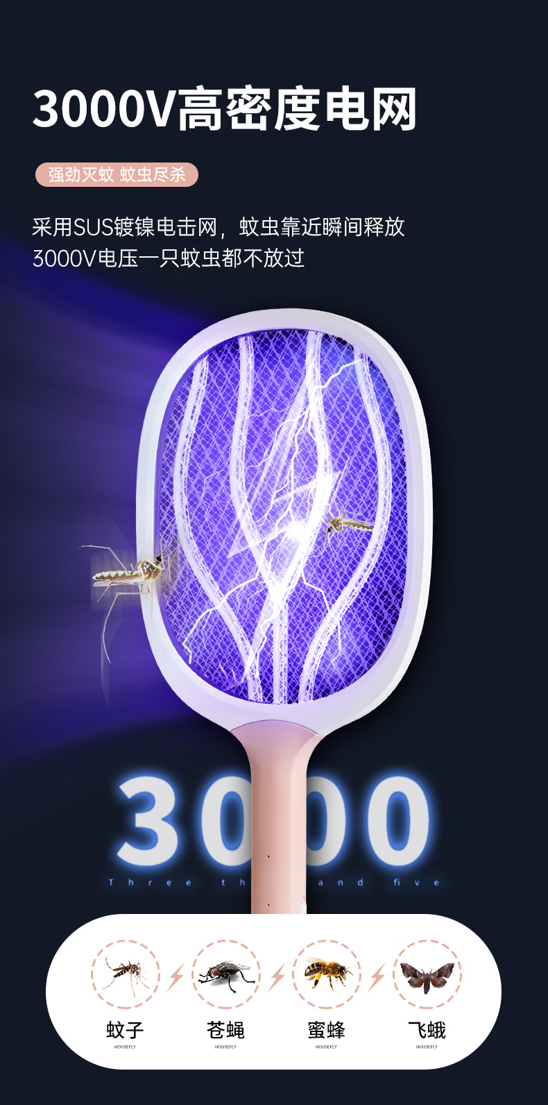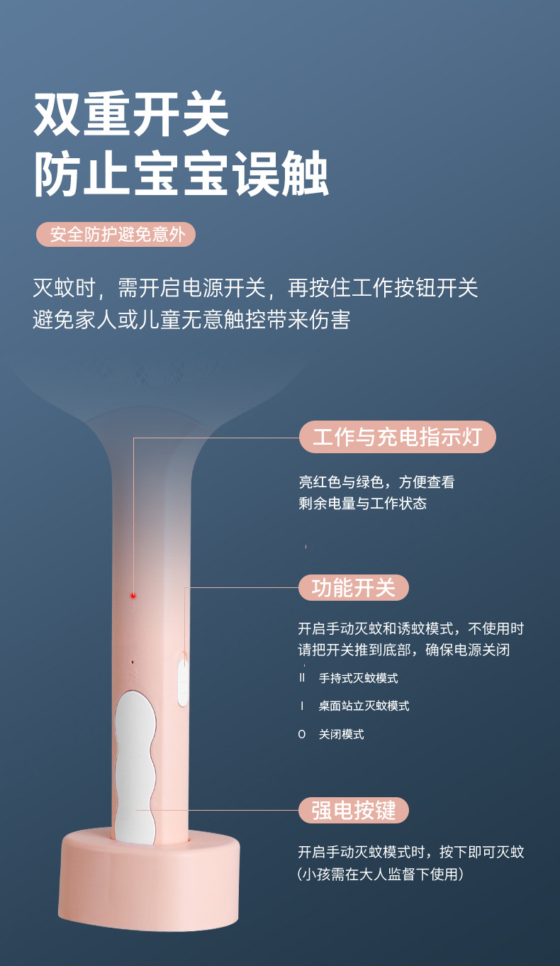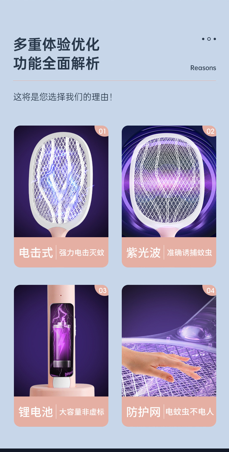电击两用电蚊拍灭蚊器二合一USB充电式家用灭蚊拍紫光诱蚊灭蚊灯