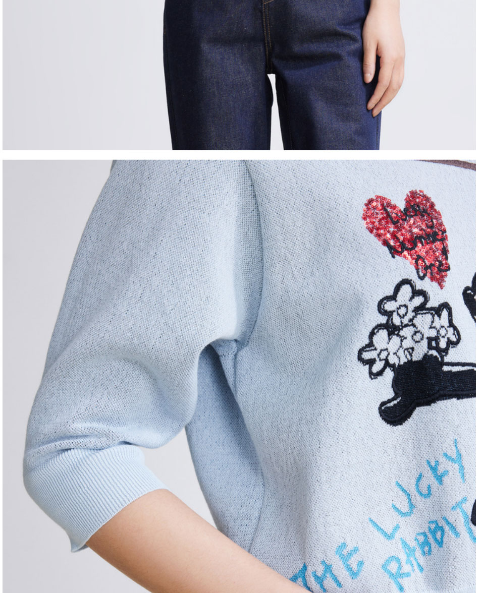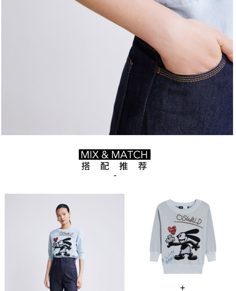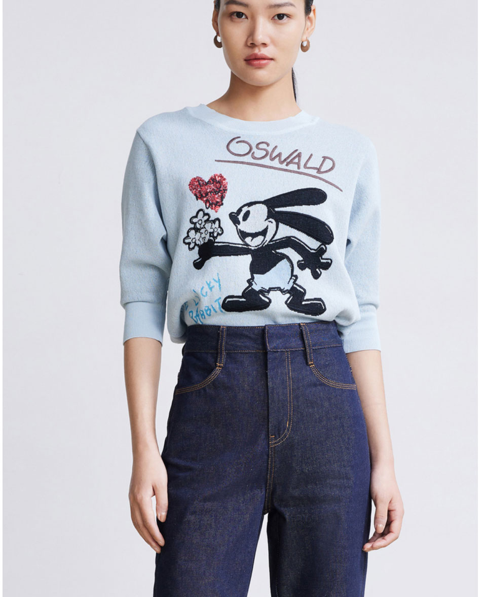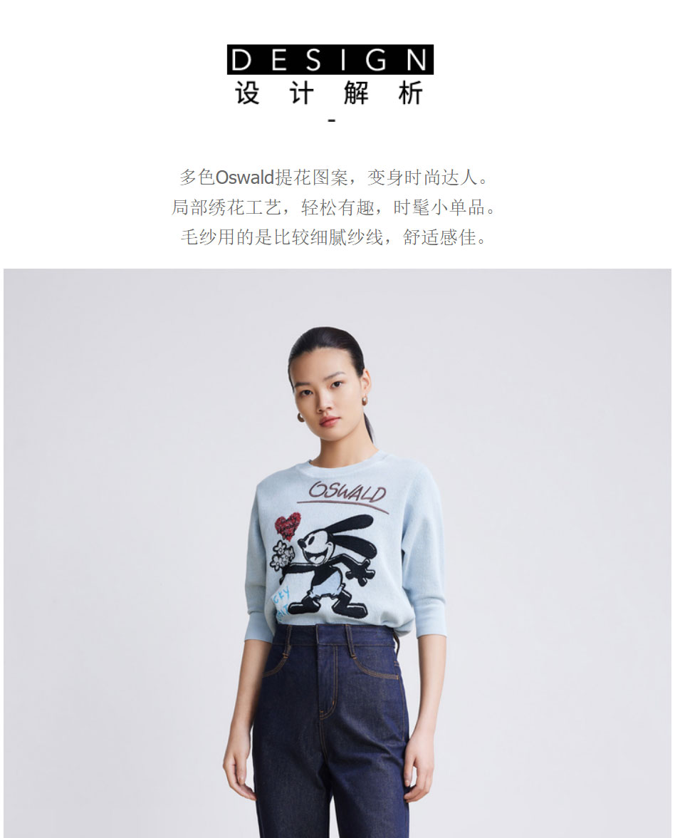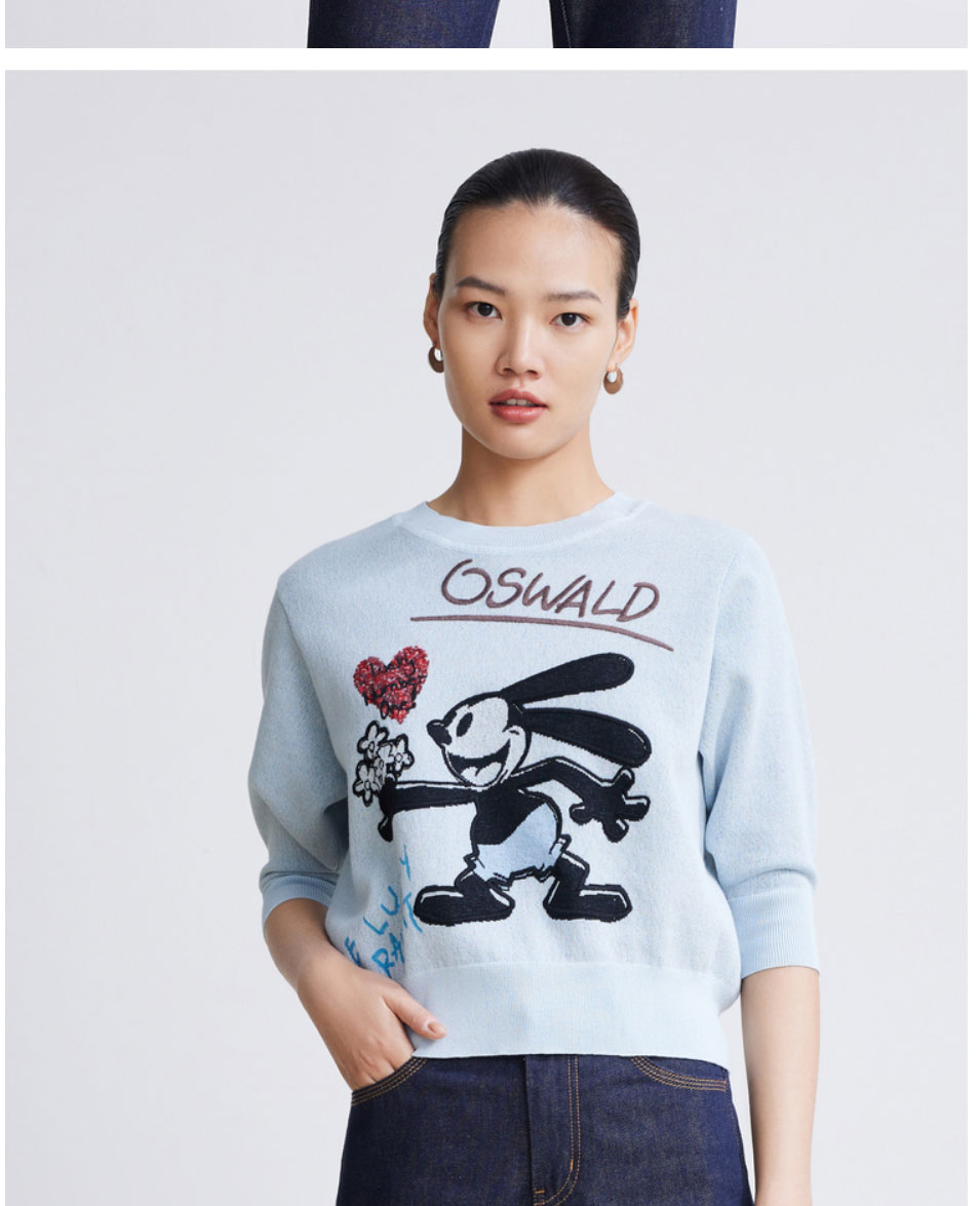 LILY迪士尼Oswald系列2022春新款女装时尚短款毛针织衫122120TK357