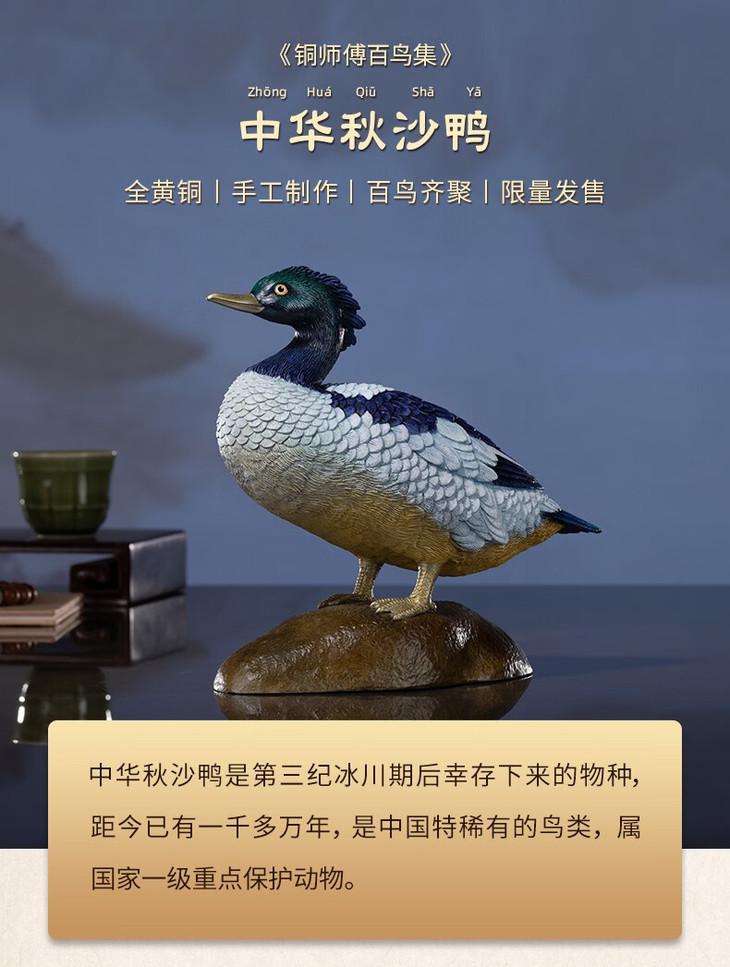 《铜师傅百鸟集》之中华秋沙鸭铜工艺品 办公室客厅桌面家居饰品