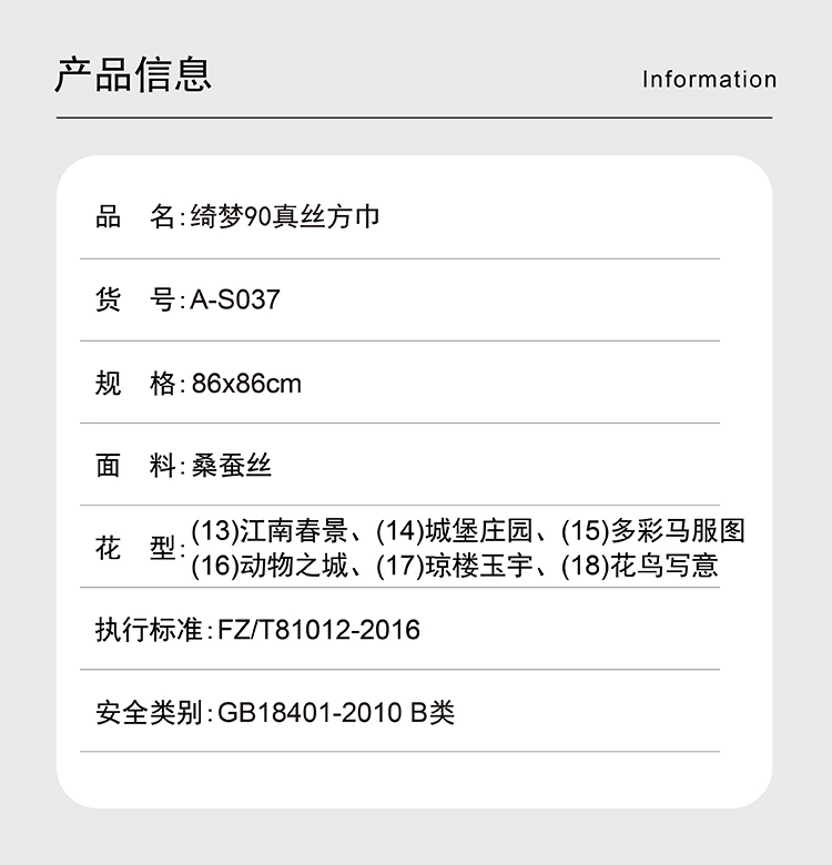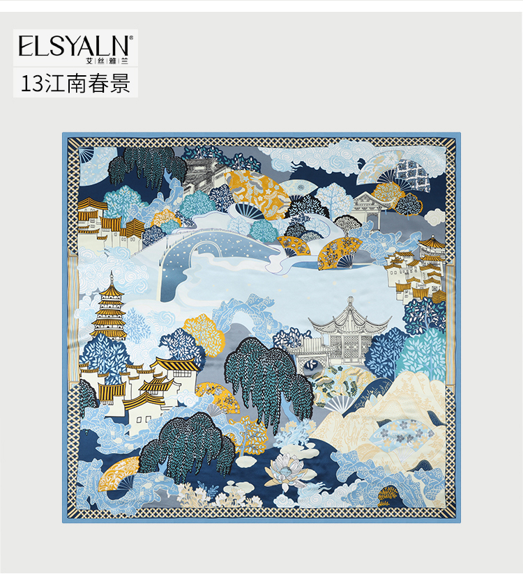 【100%桑蚕丝】绮梦90真丝方巾A-S037 尺寸86x86cm【赠礼盒】【Y】