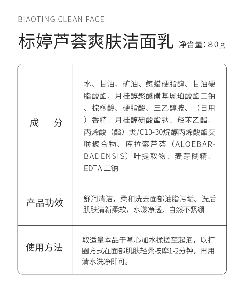 京G妆网备字2022003295 标婷芦荟爽肤洁面乳