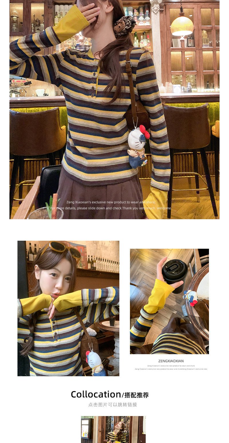 <曾小咸推荐>现货秒杀 !微信超特价!韩系条纹假两件t恤 日常139.99 立减70 秒杀69.99!!