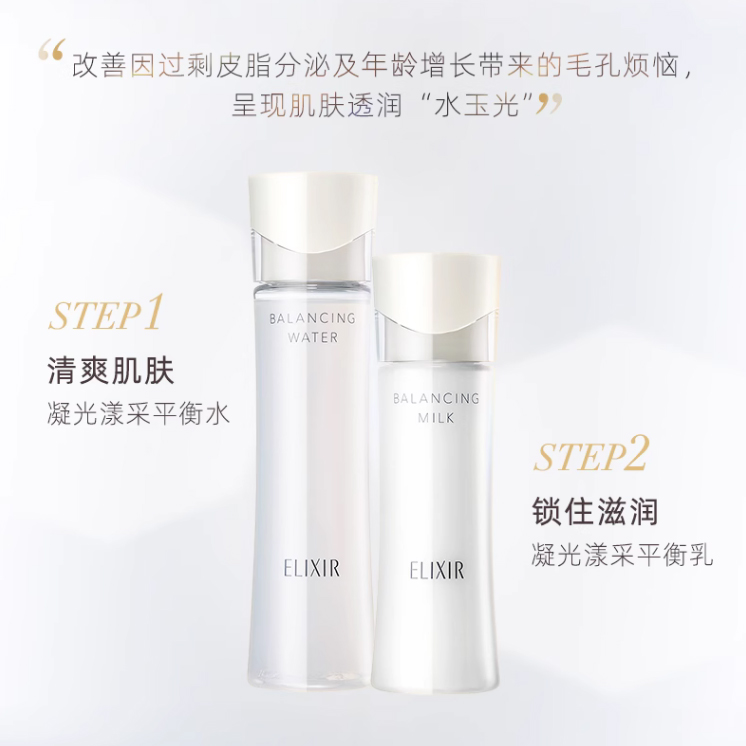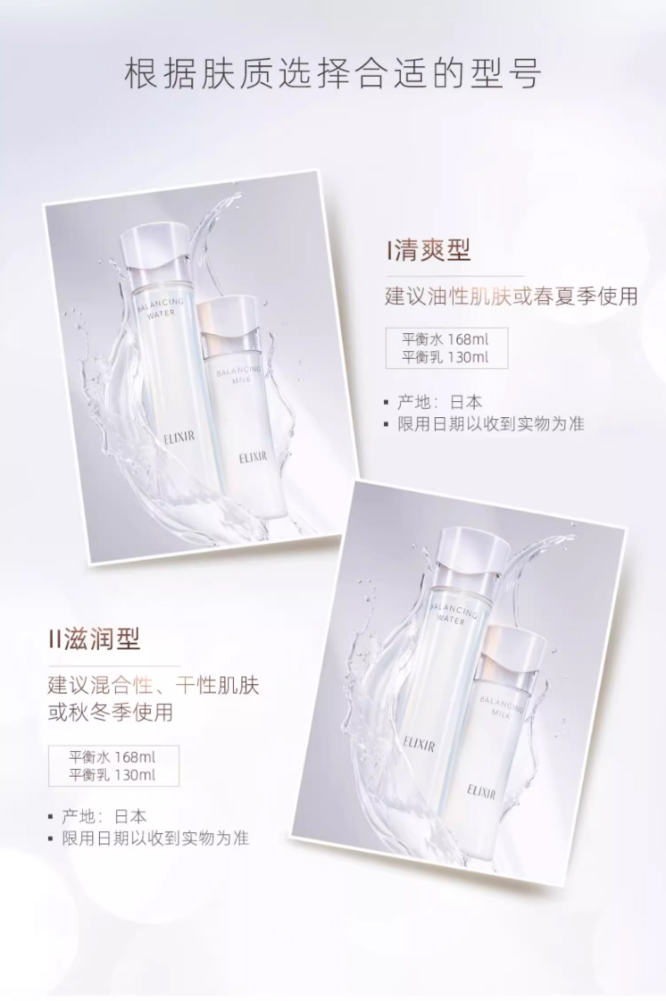 【品名】Elixir怡丽丝尔平衡控油水乳套装168ML水+130ML乳 滋润型/清爽性