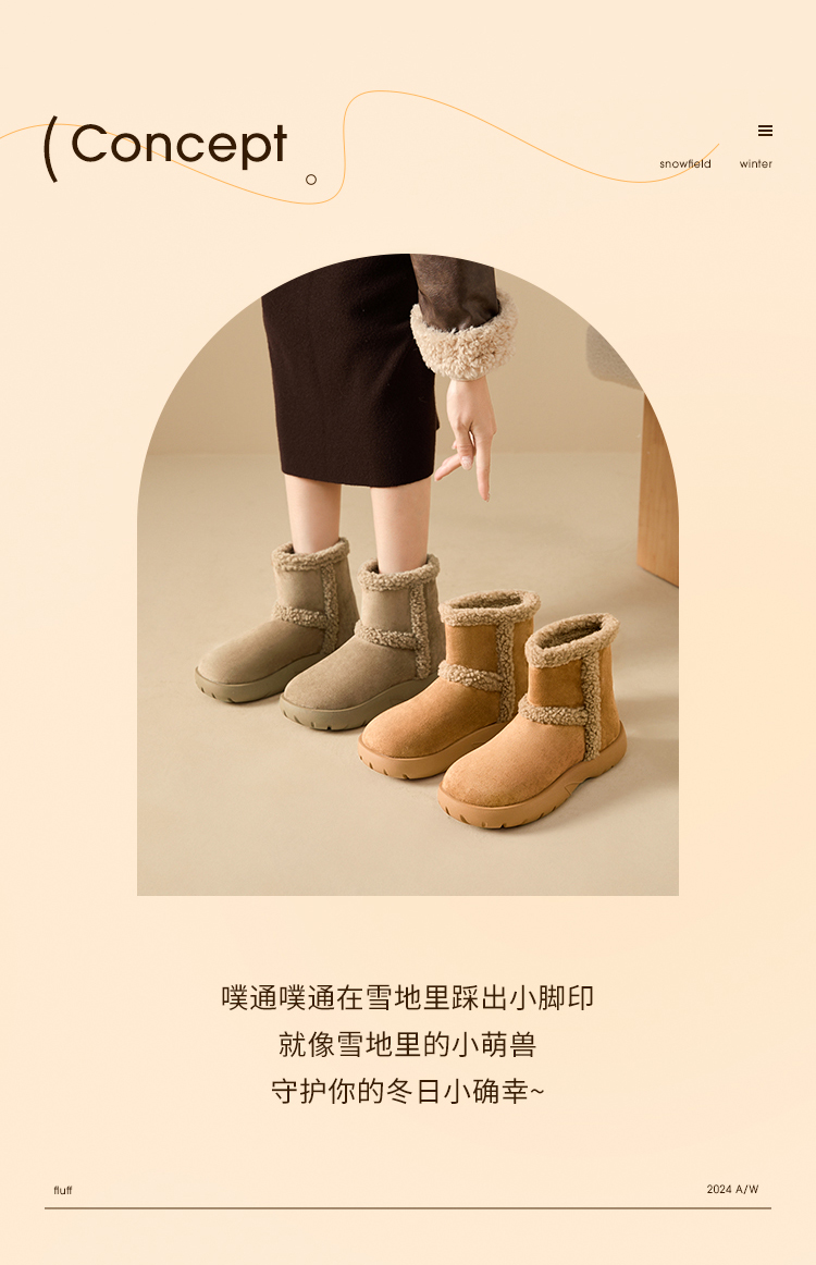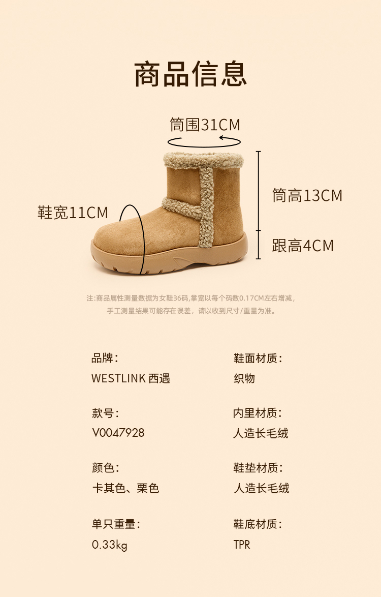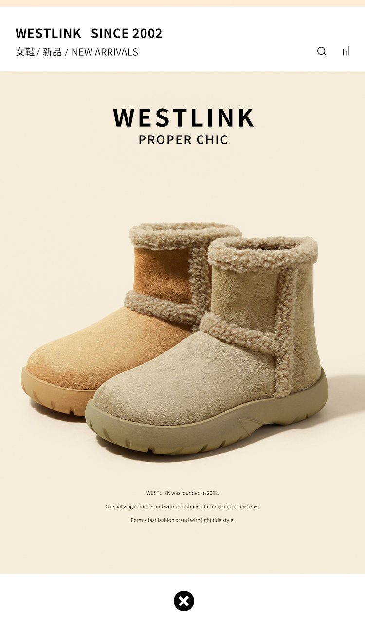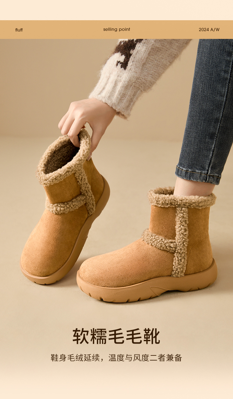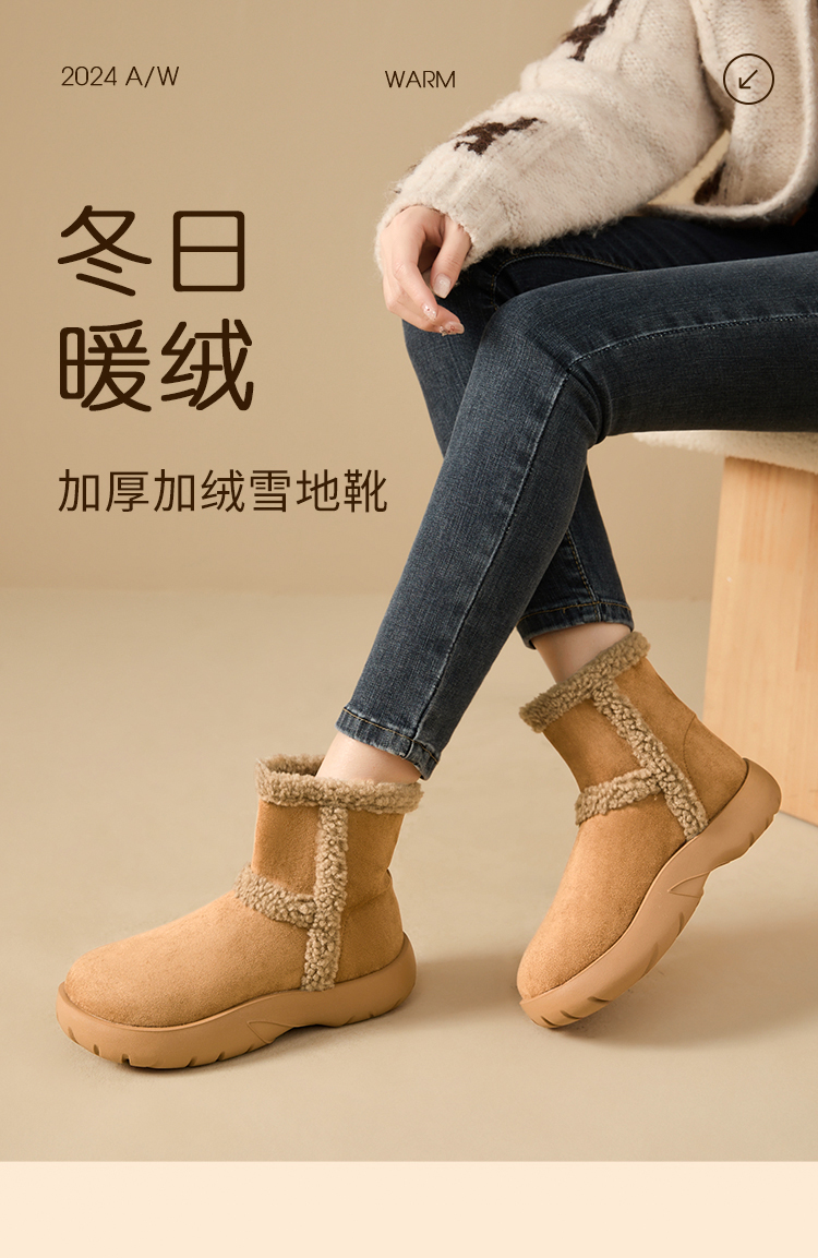西遇保暖雪地靴女冬季新款复古东北外穿棉鞋厚底加厚加绒短靴V0047928