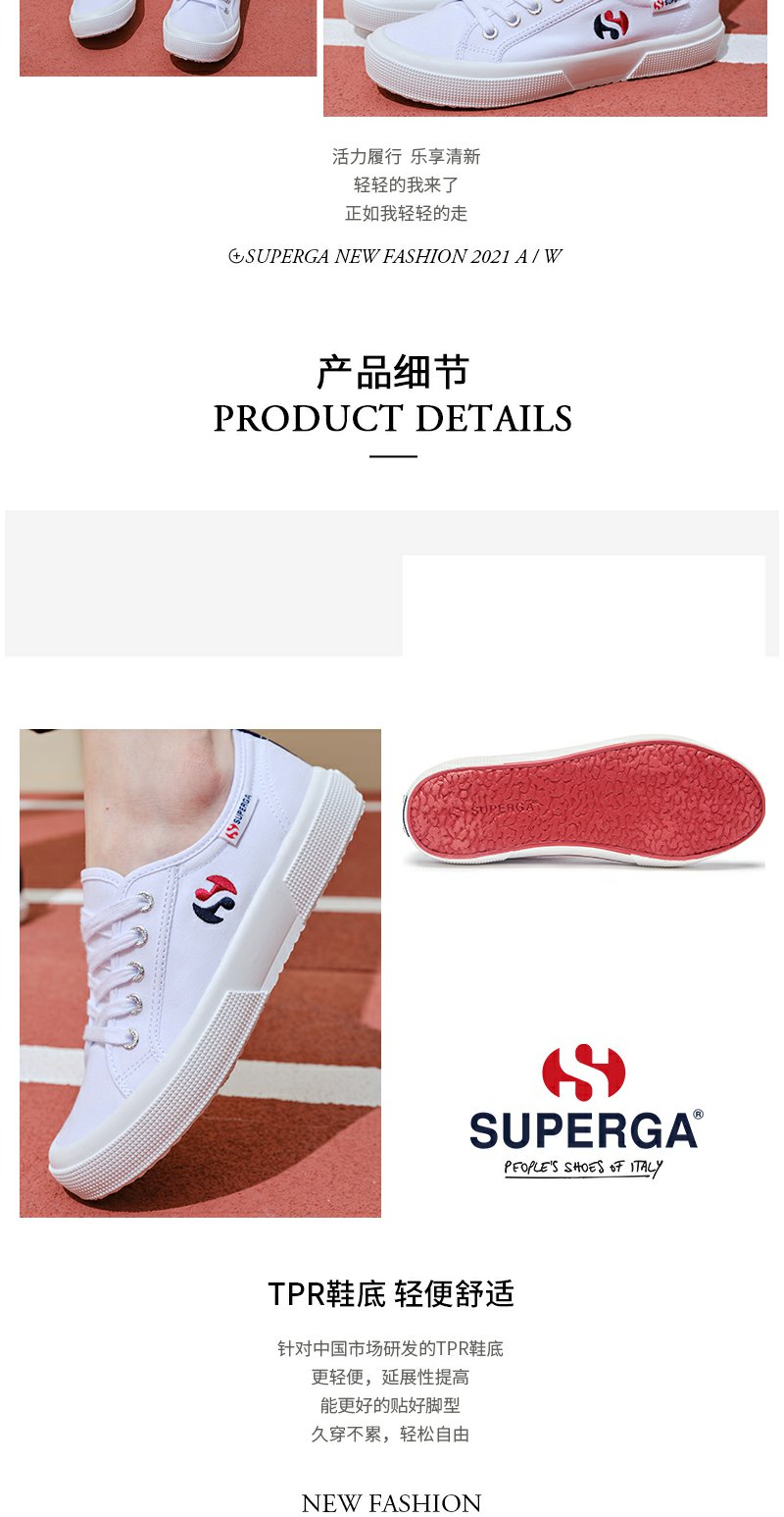 SUPERGA春夏2022新品轻质电绣百搭经典透气小白鞋帆布鞋休闲板鞋