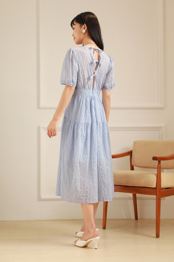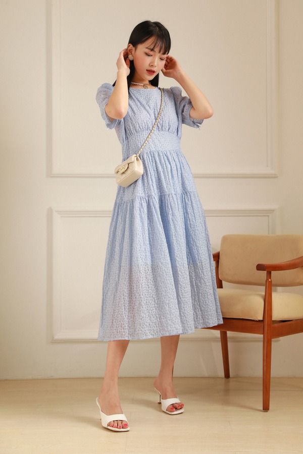 L.Fleuri 蓝色肌理感收腰连衣裙 12278