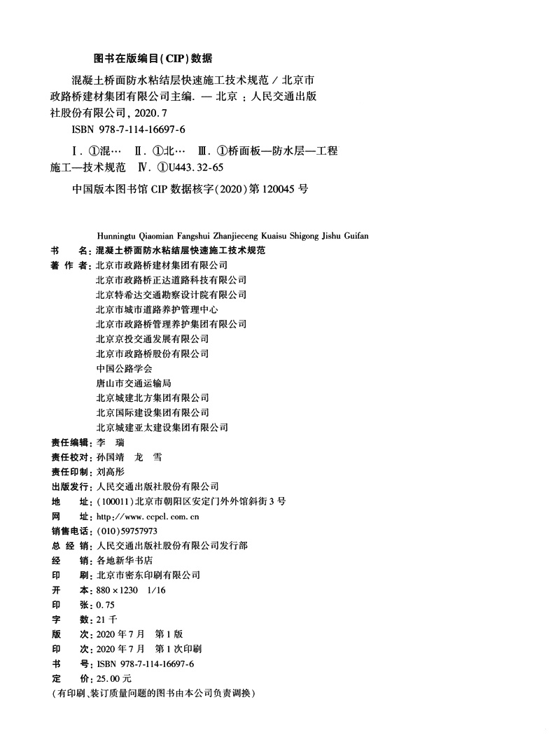 书名:混凝土桥面防水粘结层快速施工技术规范