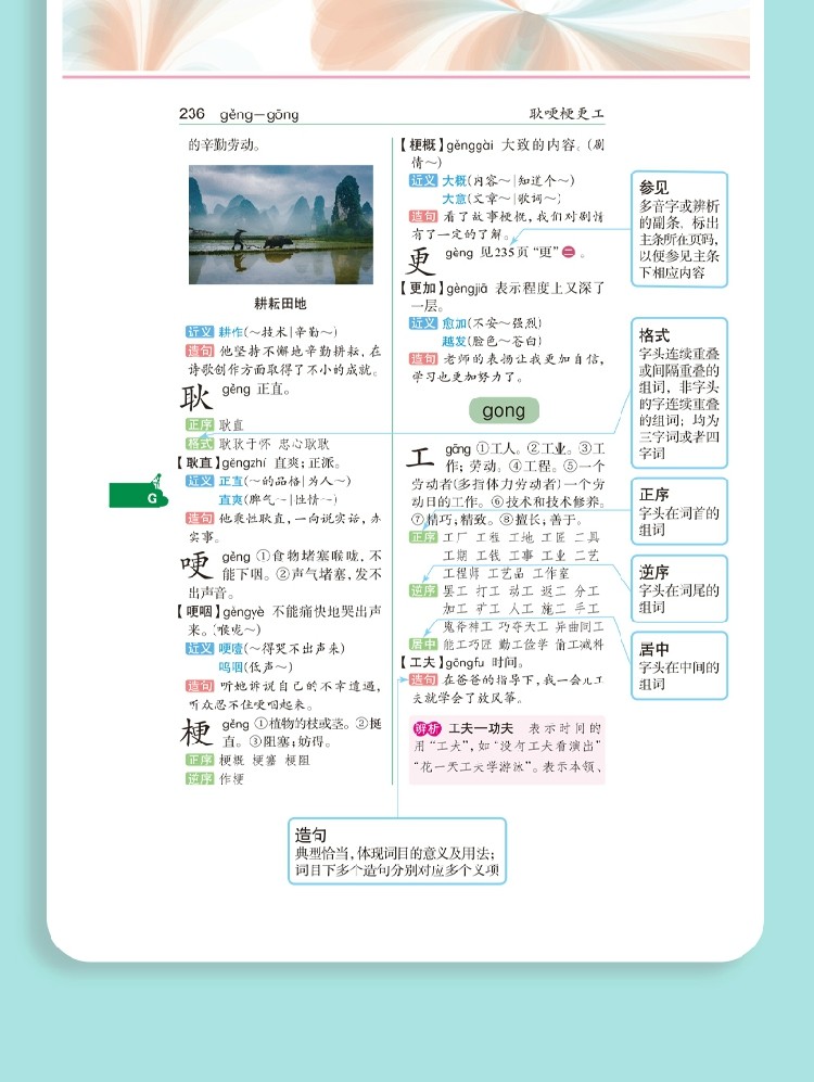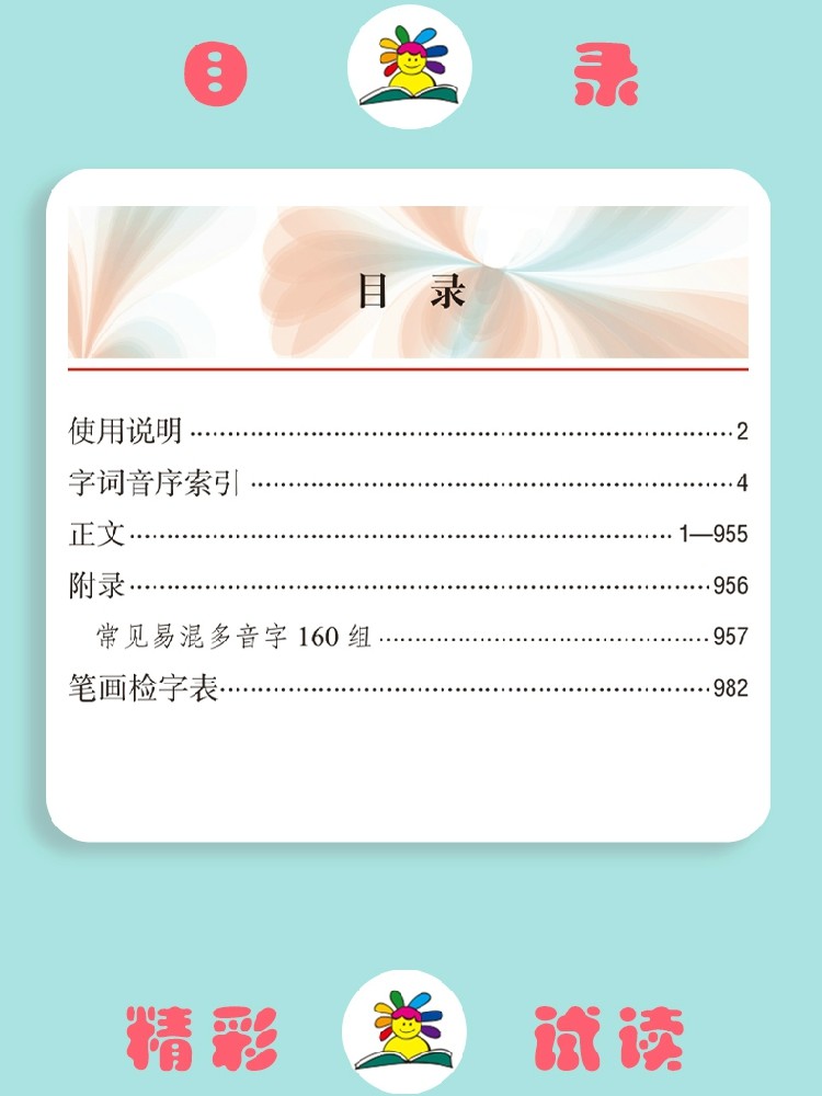 收常用单字3400多个,常用词语6500多条,注音规范,释义准确。