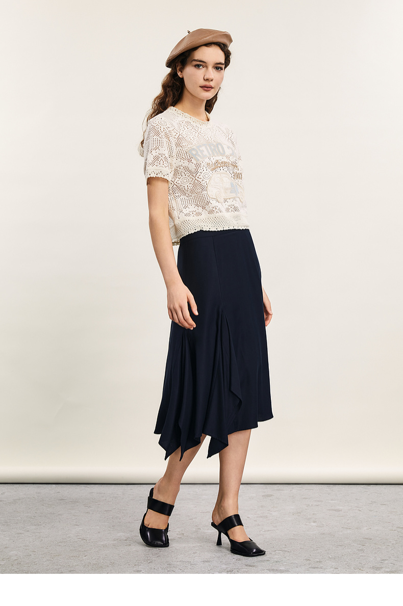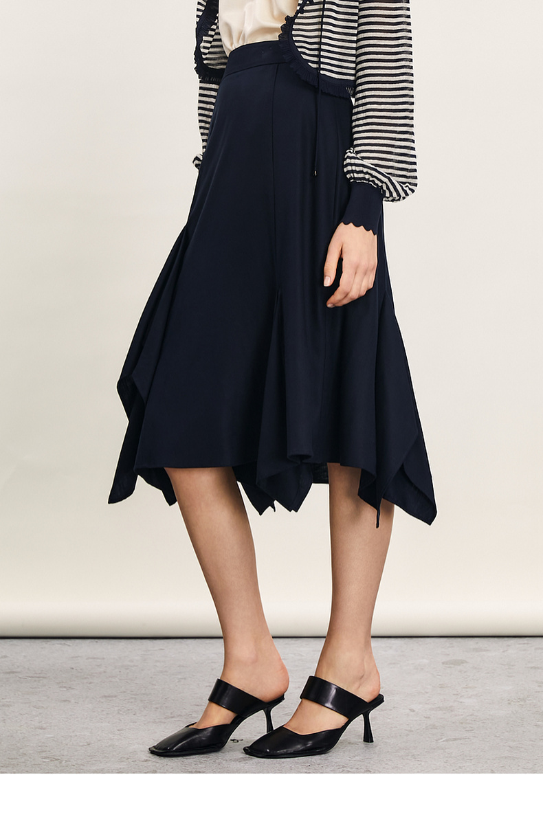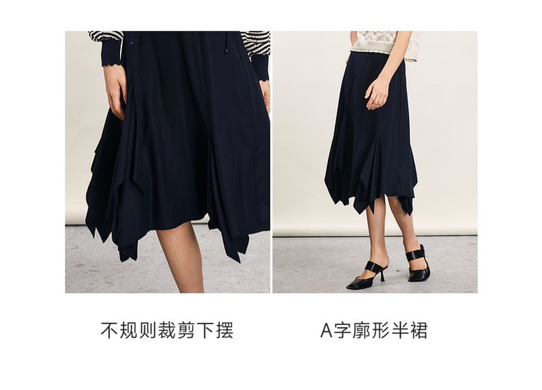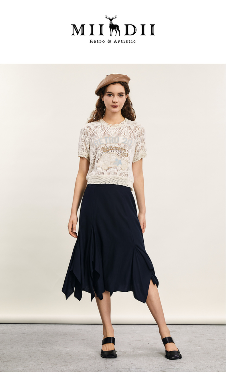 谜底半身裙女2024年夏季新品复古优雅不规则下摆中长裙242MB0681