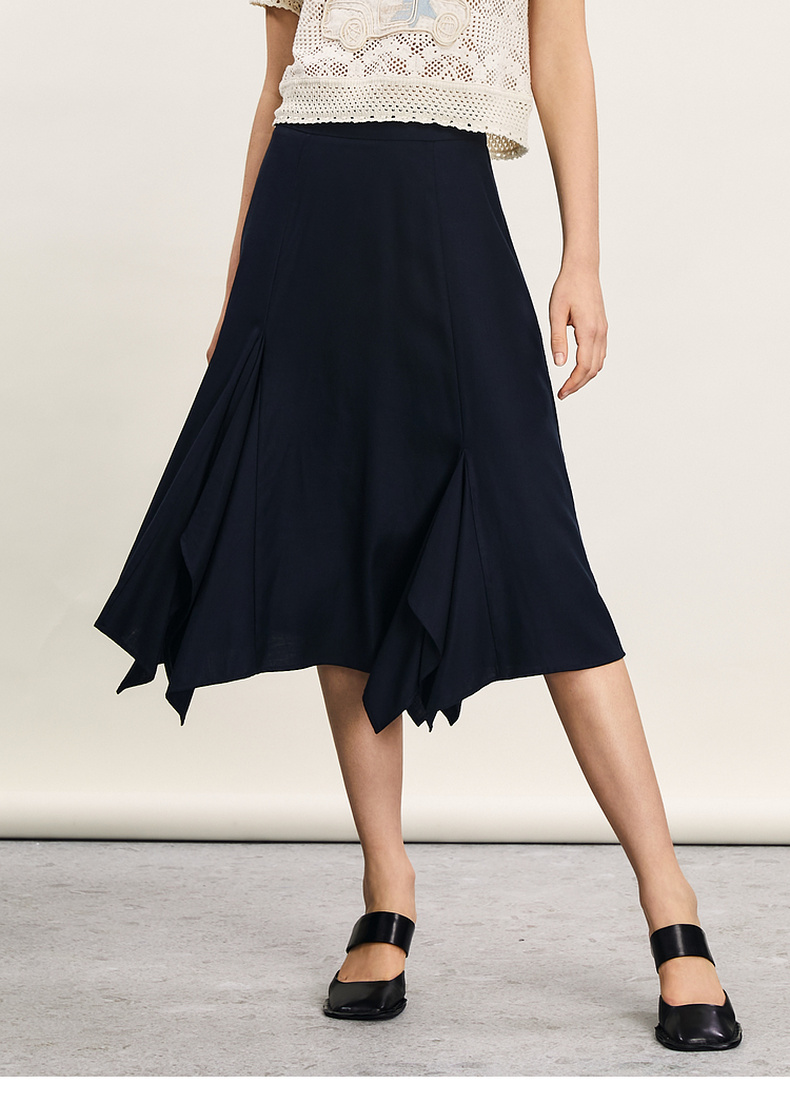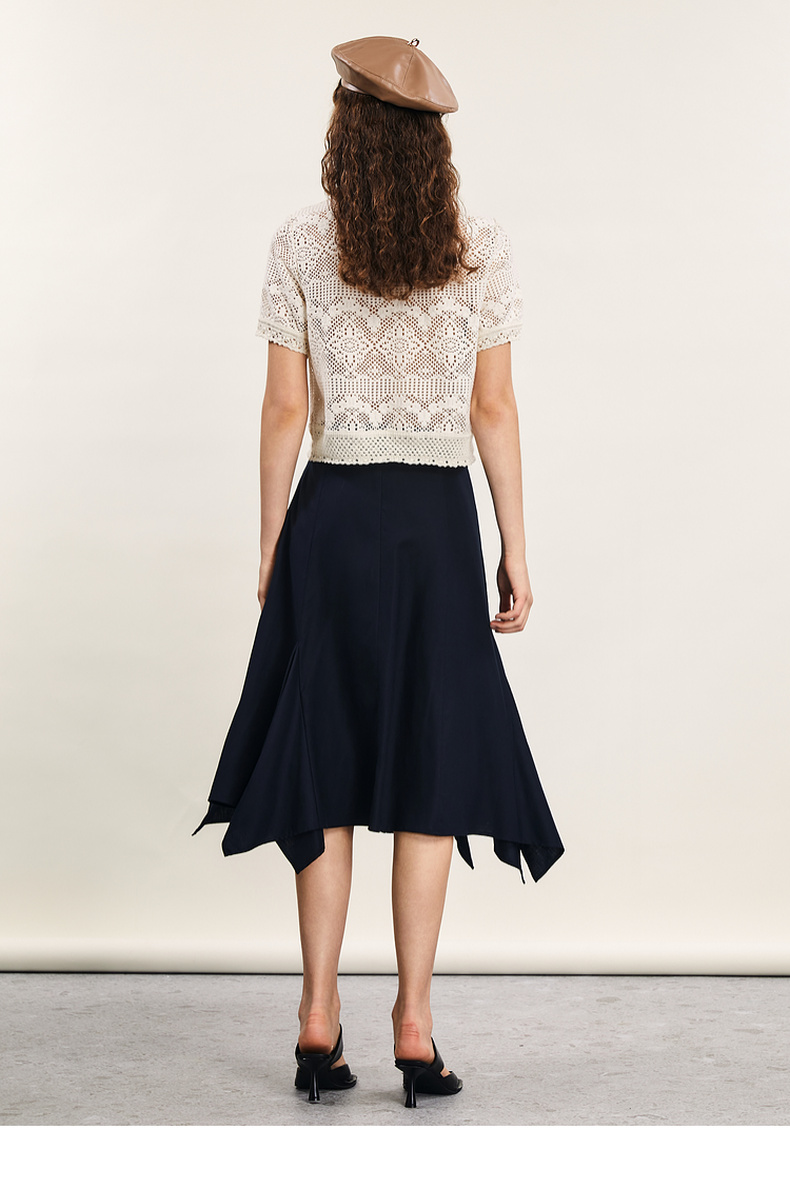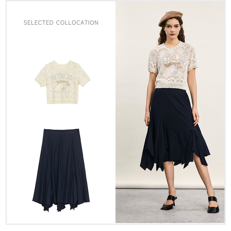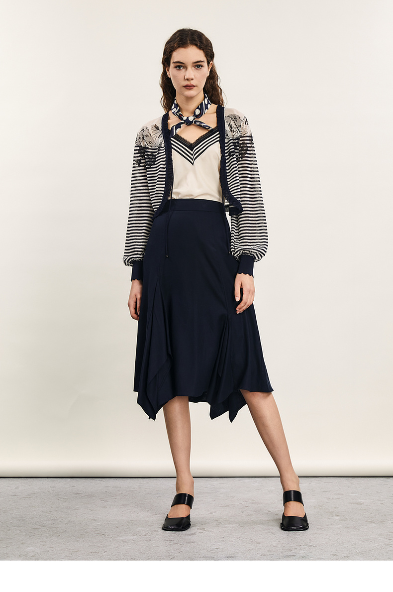 谜底半身裙女2024年夏季新品复古优雅不规则下摆中长裙242MB0681