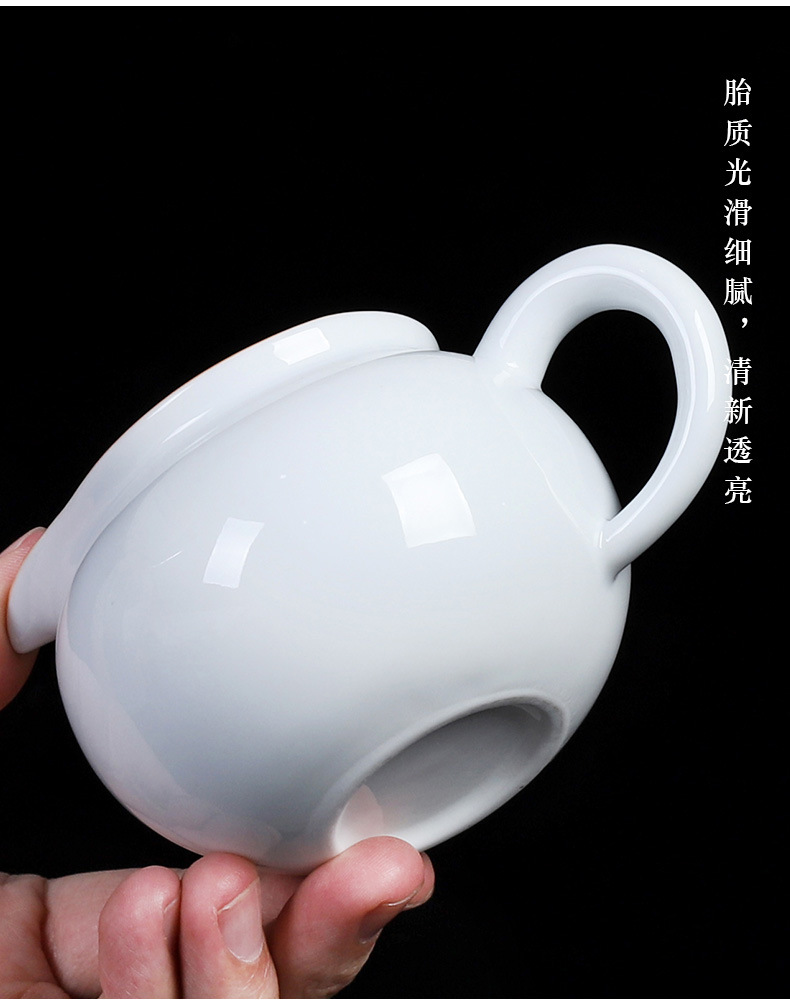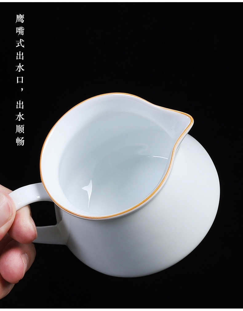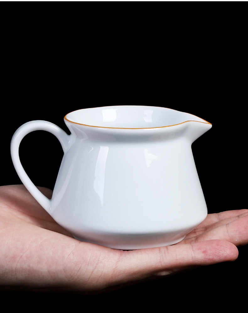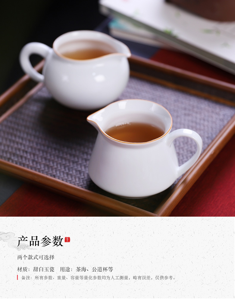甜白瓷公道杯纯白陶瓷分茶器简约带把公平杯倒茶杯子功夫茶具配件