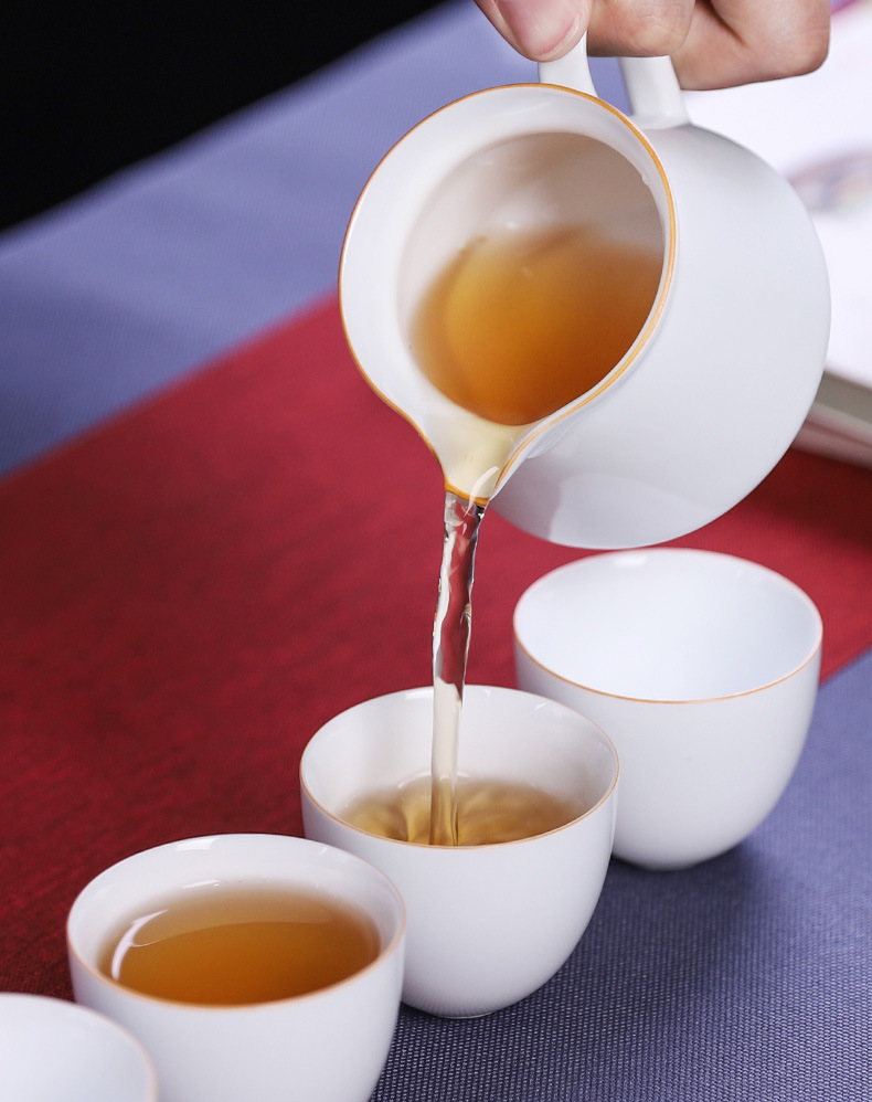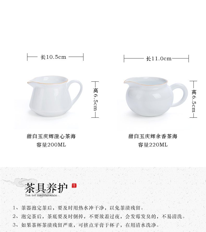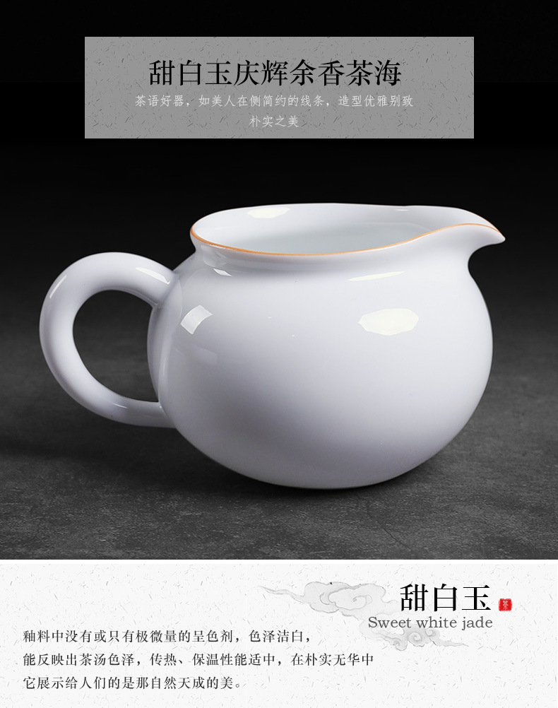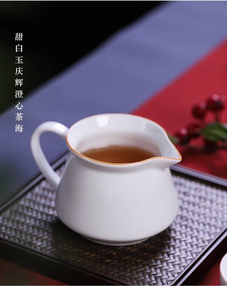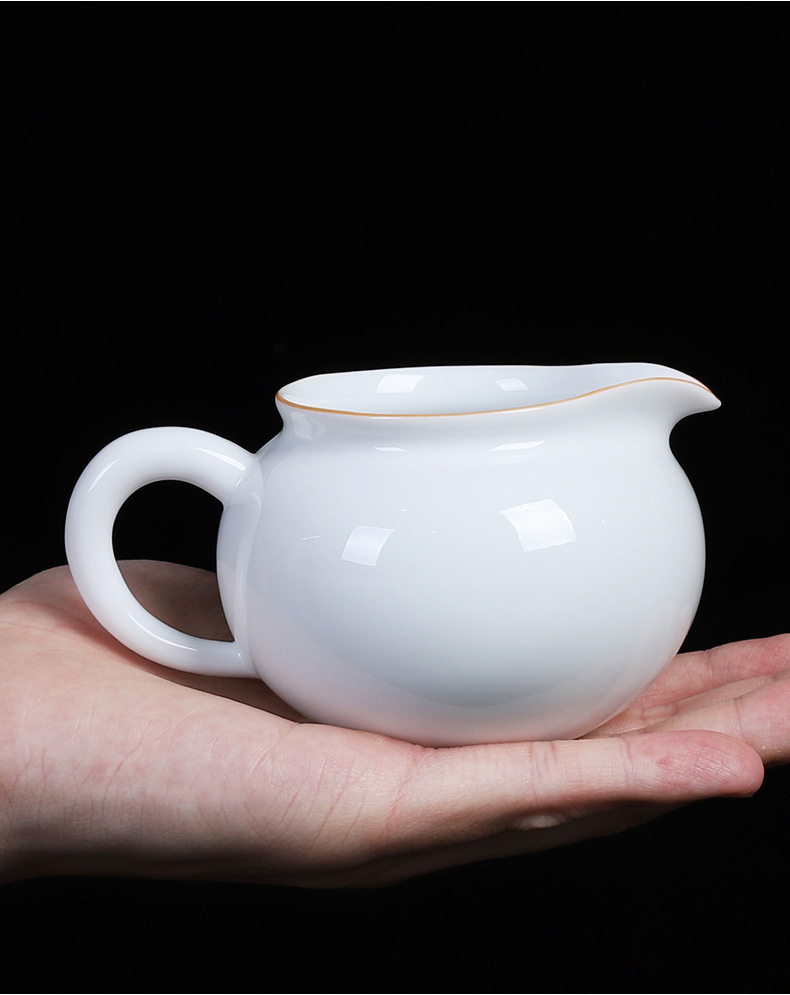 甜白瓷公道杯纯白陶瓷分茶器简约带把公平杯倒茶杯子功夫茶具配件