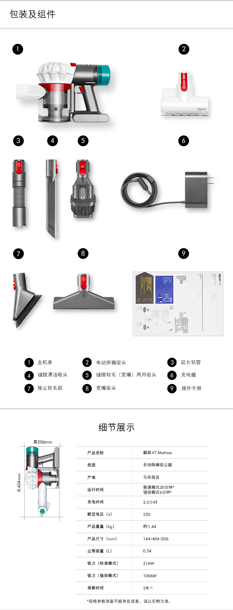 【已下架】Dyson/戴森V7 Mattress除螨仪 家用小型手持无线床上去螨虫吸尘[福利品]