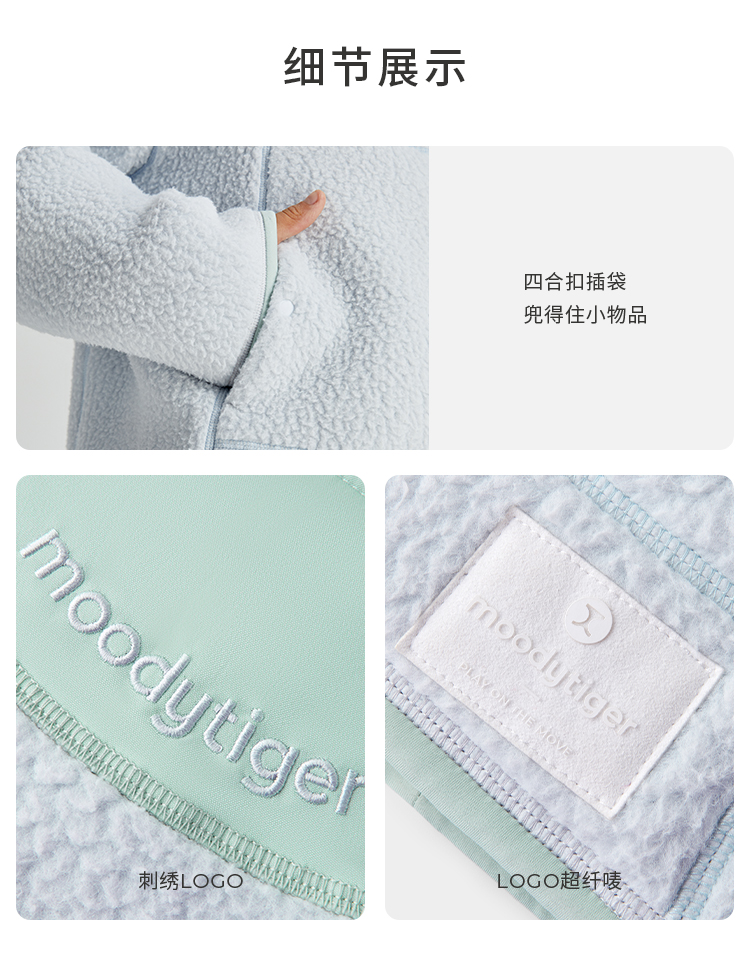 moodytiger23冬新儿童羊羔绒连帽冬季舒适户外休闲保暖外套M34510404