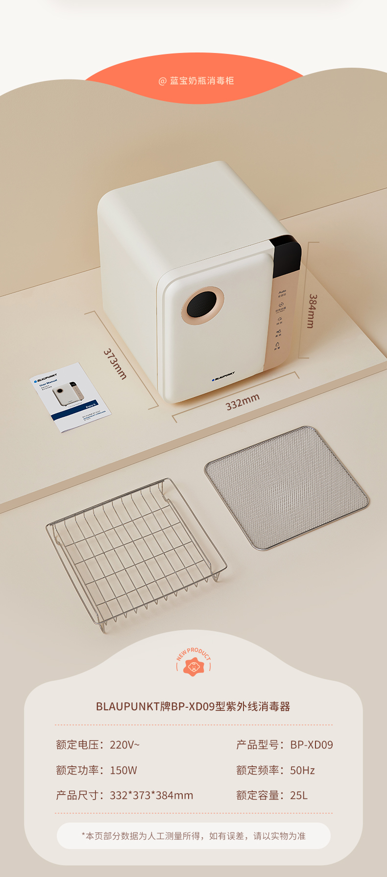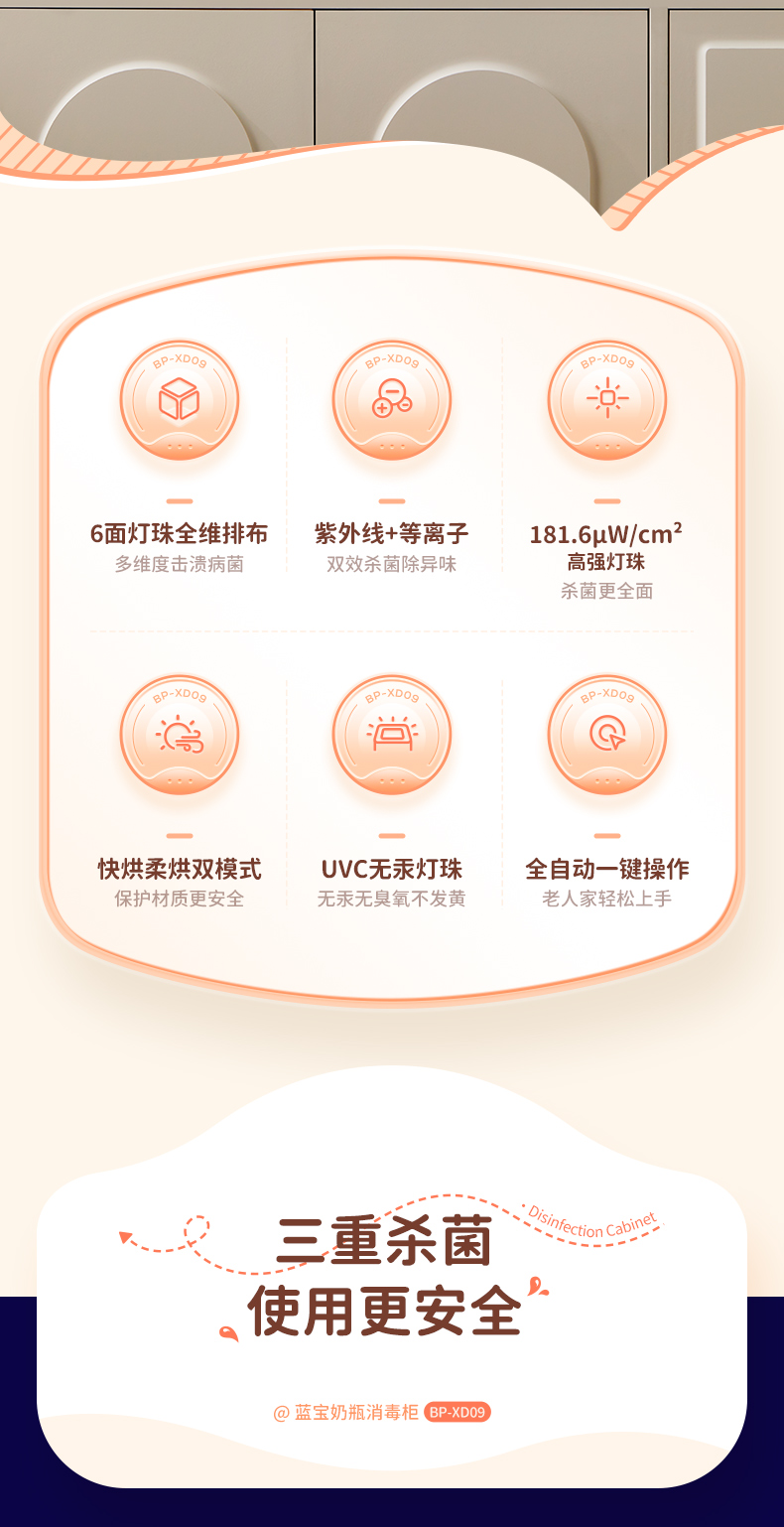 蓝宝婴儿奶瓶消毒柜烘干一体机宝宝衣物专用紫外线BP-XD09