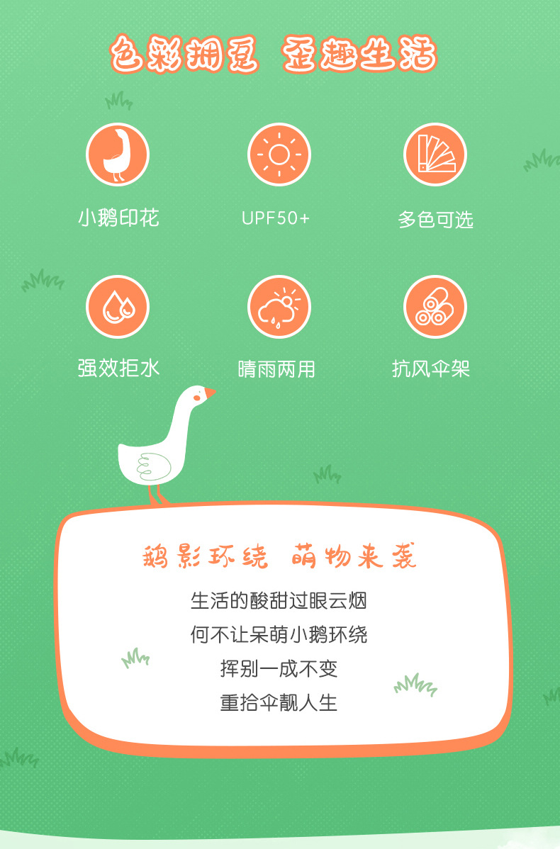 【搞怪小鹅 乐趣随性!】太阳下的魔法伞,紫外线全城防护。折叠轻盈,风雨无惧。生活需要一丝魔幻,从天堂伞开始。