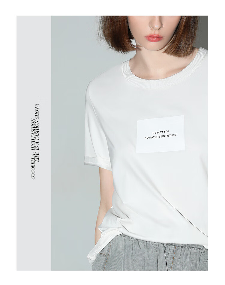 COCOBELLA凉感舒适冰氧吧T恤女印花休闲字母短袖TS536