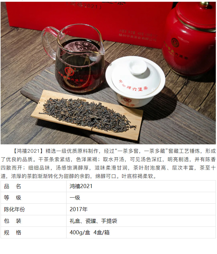中茶广西六堡黑茶 2020年广西梧州窖藏六堡鸿禧2021礼盒400克\盒/原产地直发