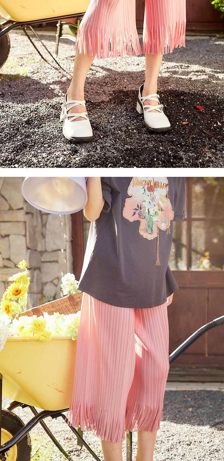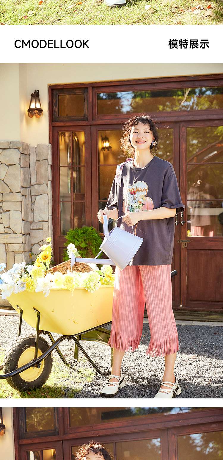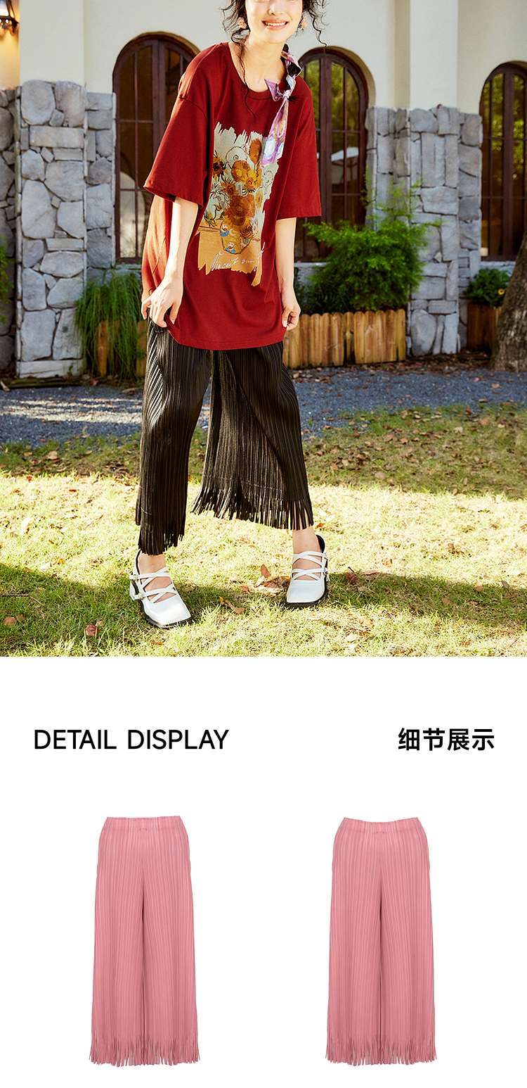 两三事流芳佳丽 时尚流苏裤脚压褶九分裤2023新款宽松休闲裤女夏
