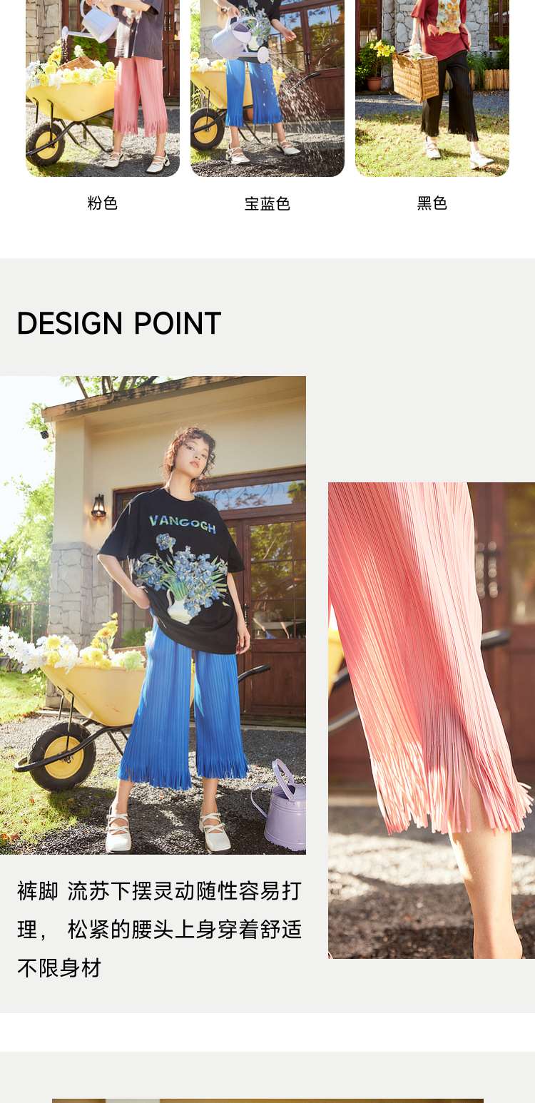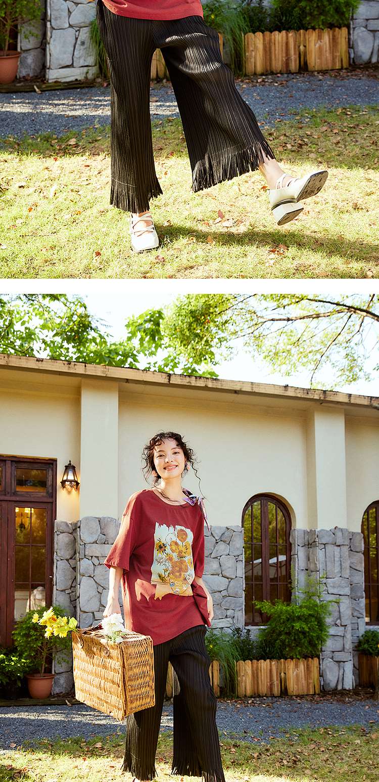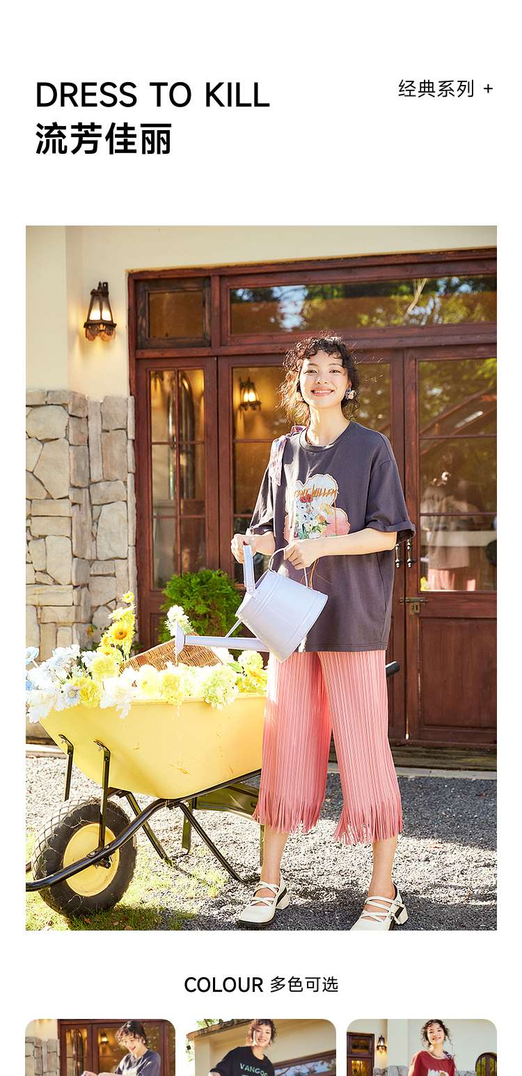 两三事流芳佳丽 时尚流苏裤脚压褶九分裤2023新款宽松休闲裤女夏