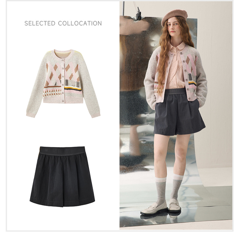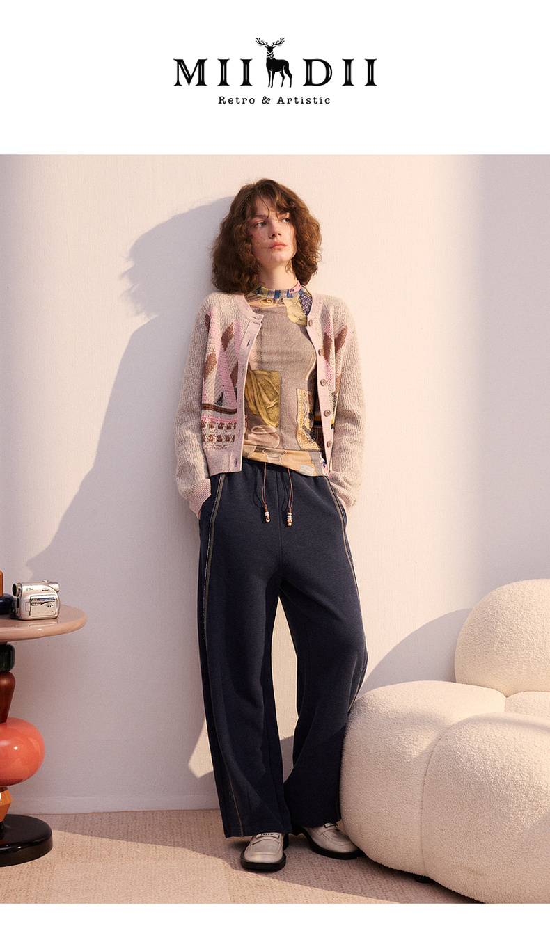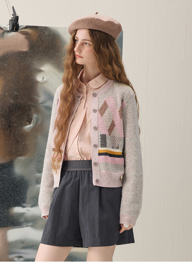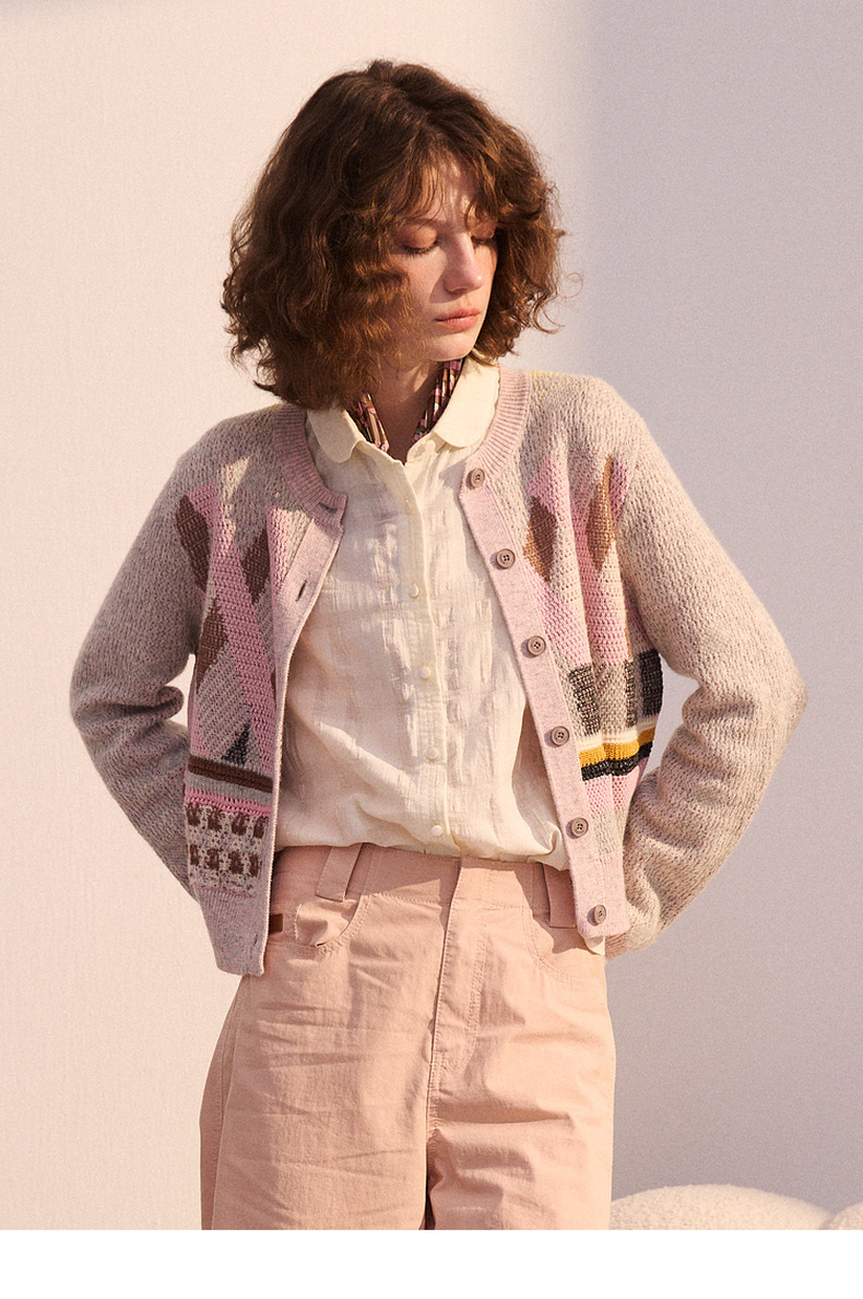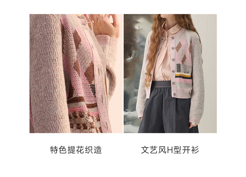谜底针织开衫长袖2026年春季新品原创提花减龄H型毛衣女261MZ0318