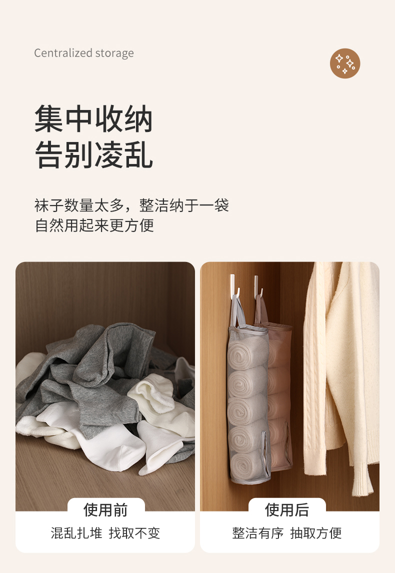 FaSoLa袜子收纳袋挂式网兜学生宿舍衣柜装文胸收纳挂袋悬挂整理神器