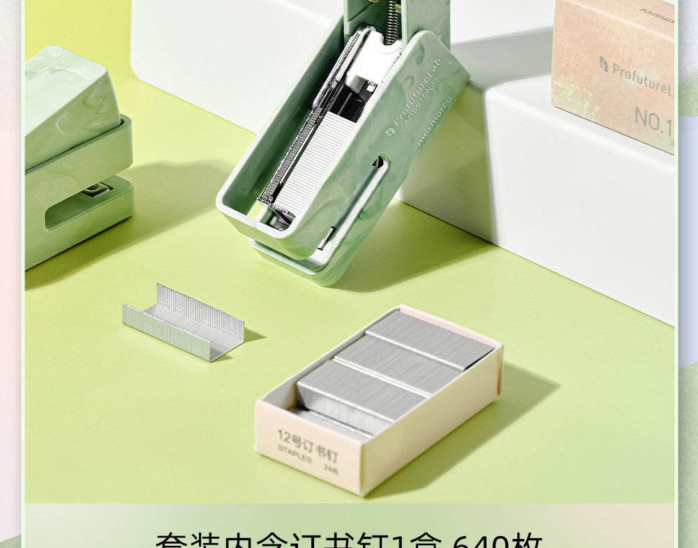 晨光自然灵感防夹手迷你订书机套装小号订书机简约高颜值便携订书器(颜色随机)
